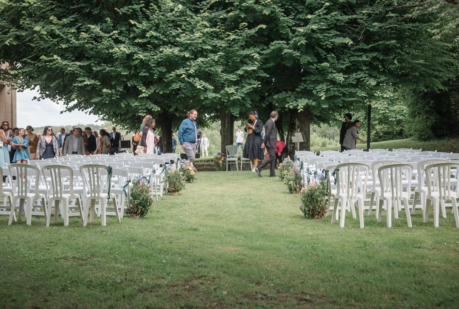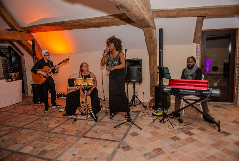 La touche personnelle que nous avons particulièrement appréciée lors d'un mariage récent était l'animation musicale en plein air. Le couple avait choisi d'inviter un groupe de musique acoustique, qui a joué en live dans le parc du château pendant le cocktail.