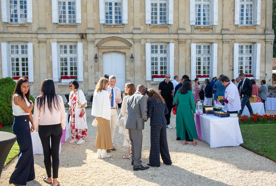 Les invités ont pu profiter de la musique tout en se promenant autour du château, avec une vue imprenable sur les jardins et le pigeonnier. Ce moment de convivialité et d'authenticité a apporté une ambiance chaleureuse et intime, renforçant l'atmosphère magique du lieu.