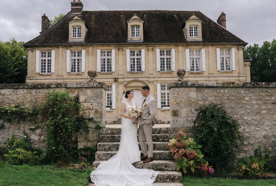 Imaginez une cérémonie en plein air dans le parc du château, sous une arche de fleurs élaborée par un fleuriste de renom, baignée par une lumière dorée au coucher du soleil. Les mariés ont échangé leurs vœux entourés de leurs proches dans une ambiance à la fois élégante et intimiste.