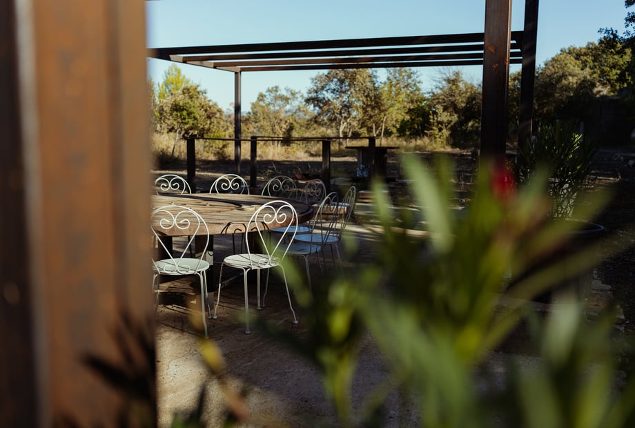 The beautiful shaded terrace, complemented by a pétanque court, is ideal for convivial gatherings and outdoor entertainment.