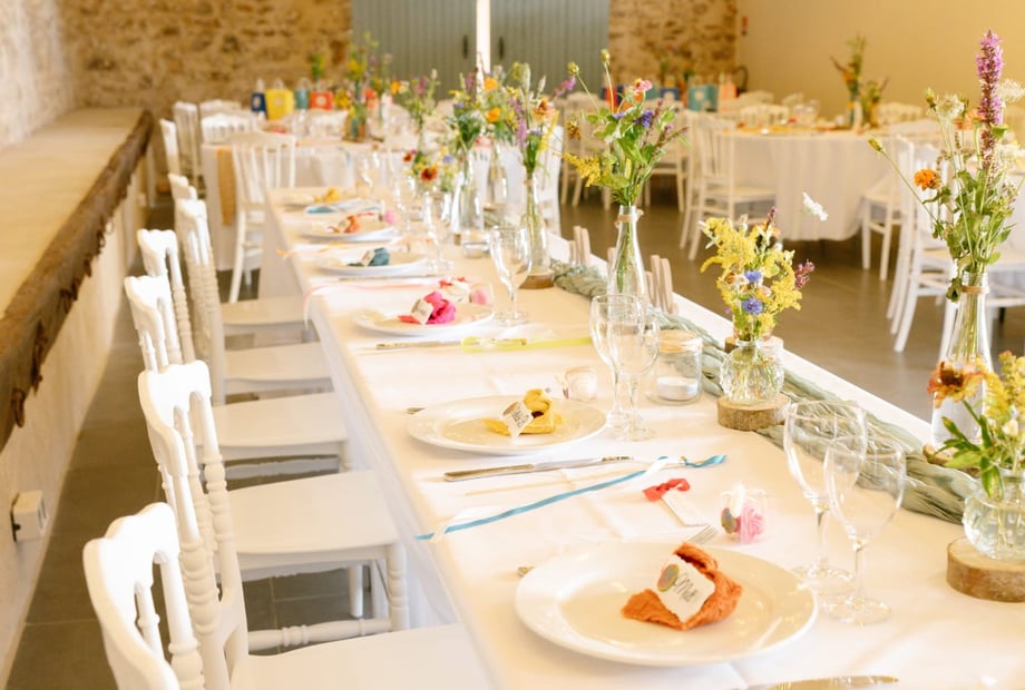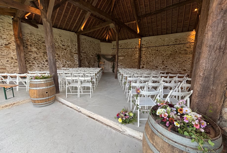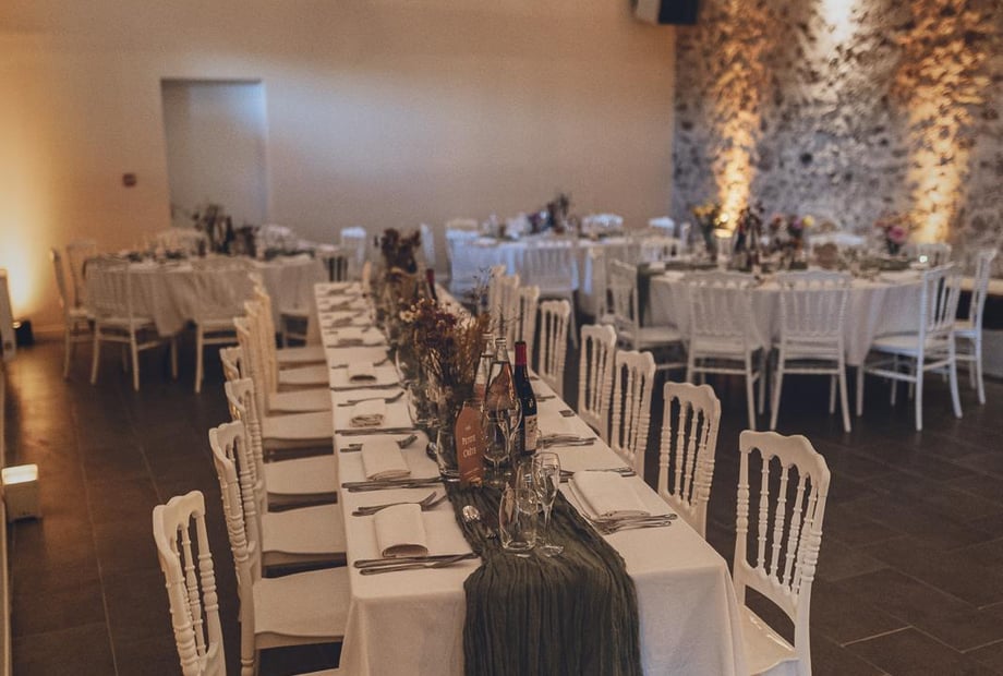 The estate's wedding reception hall, measuring over 300 m², is equipped with restrooms (women's, men's, and disabled access) and a catering kitchen. It can accommodate up to 230 people for a seated meal.