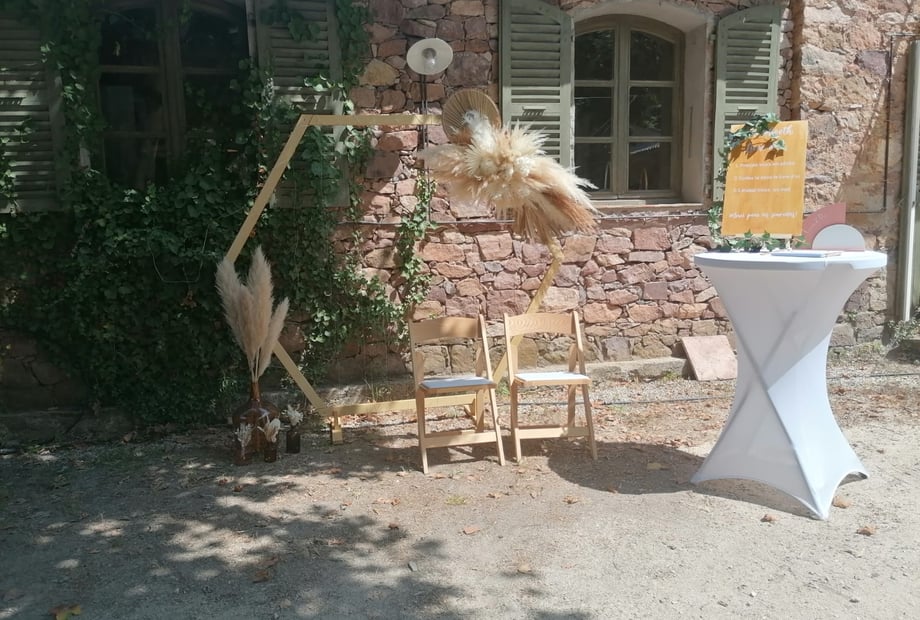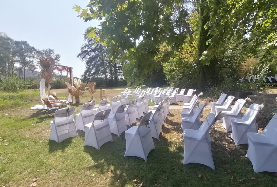 Yes, between April 20th and October 20th, the minimum stay is two nights on weekends. It's not very restrictive, and it's not uncommon for couples to choose to stay three nights, which is ideal. This allows them to settle in from Friday evening with their loved ones to decorate, get ready, and prepare themselves. Then, on Saturday evening, there's the celebration and party, followed by brunch on Sunday that lasts quite late into the day. Finally, on Monday morning, those who stayed behind can calmly tidy up and enjoy this magical interlude.