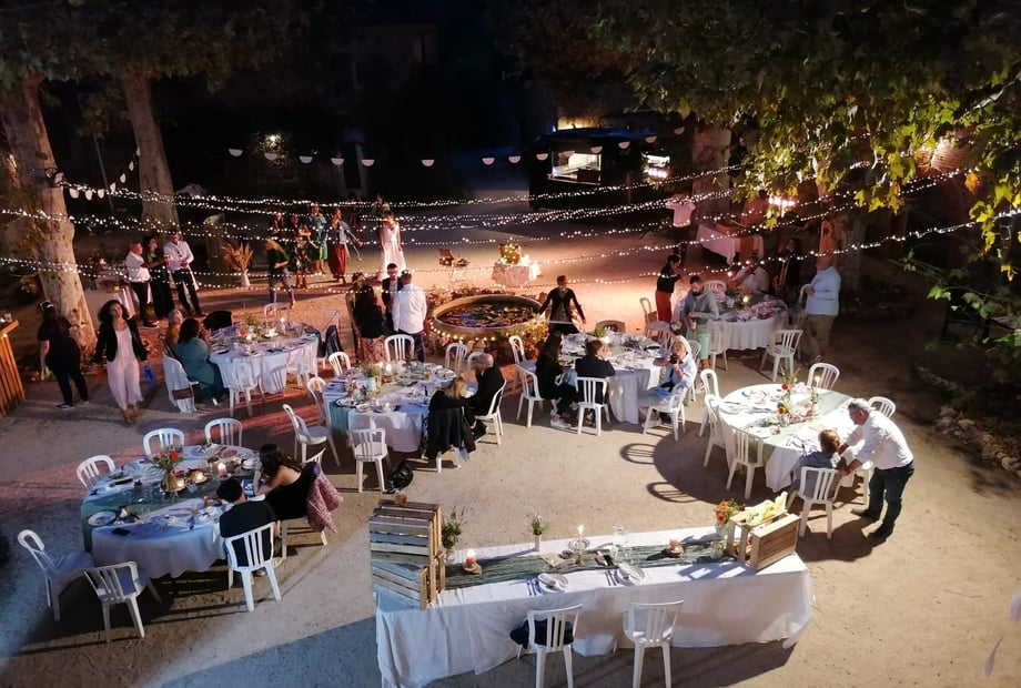 For dance parties, there's no time limit, but there is a noise limit. Even though we don't have immediate neighbors, at night the noise carries far, and we have to keep the volume down, especially outdoors during the warmer months. We need to make sure the party stays lively, fun, and enjoyable while still allowing the neighbors to sleep. Especially since there are parties at La Mayonnette every weekend.