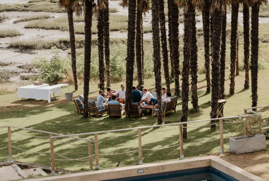 For your special moments, the estate offers numerous outdoor spaces: an exotic palm grove, a heated swimming pool, and the lawn surrounding the pool with its pergolas, ideal settings for cocktails and secular ceremonies. Finally, a 100 m² barn located near the lodge village completes this setting, offering you a flexible solution for every highlight of your reception.