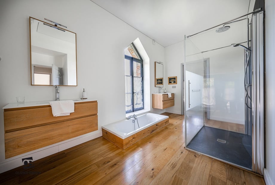 Enjoy a 375 m² reception area, a blend of contemporary elegance and authenticity with its exotic wood flooring. This bright space can accommodate up to 300 seated guests and 350 standing, offering breathtaking views of the Auray River.