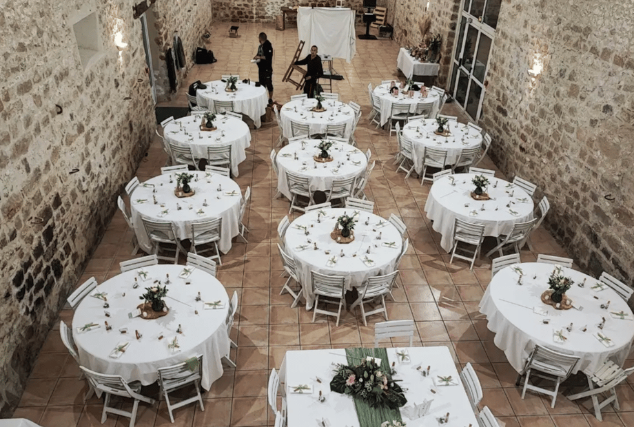 La Ferme de la Grand-Maison does not provide in-house catering, allowing couples complete freedom to choose their preferred wedding caterer.