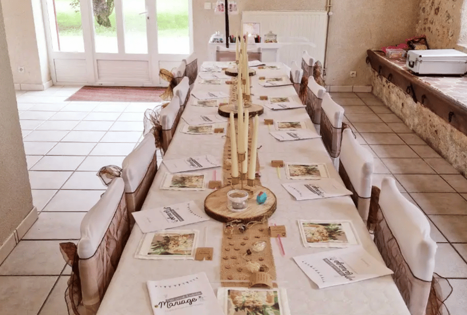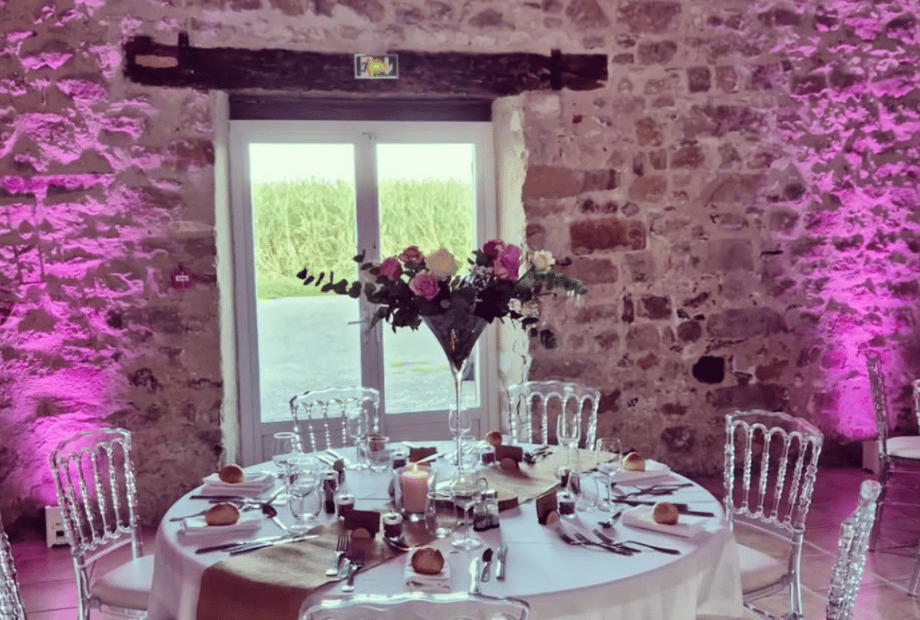 The bright and welcoming reception hall can host up to 150 guests for your wedding reception and evening celebration. La Ferme de la Grand-Maison offers 49 on-site sleeping accommodations, making it a perfect wedding venue with accommodation for you and your guests. Additional nearby accommodation is available within a 4 km radius.