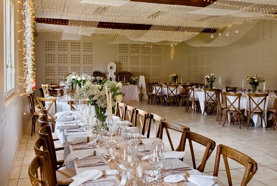 The bright and welcoming reception room allows you to host your guests in an atmosphere that is both elegant and relaxed. It lends itself equally well to bohemian, romantic, chic, or rustic décor, giving the bride and groom complete freedom in creating their own setting.
