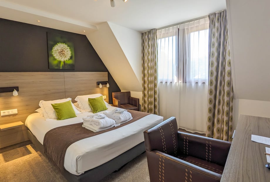 The hotel offers 100 comfortable rooms for you and your guests. It is a long-standing tradition at Hôtel Verte Vallée to offer the bridal suite to the newlyweds. All guests enjoy complimentary access to the wellness area, including a swimming pool, sauna, steam room and jacuzzi.