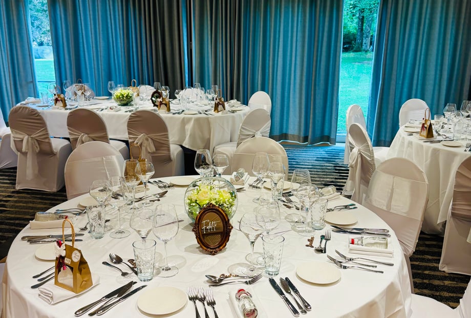 Your dinner can be hosted by the service provider of your choice. Upon request, Hôtel Verte Vallée can also recommend experienced professionals known for creating elegant and festive atmospheres tailored to your wedding style.