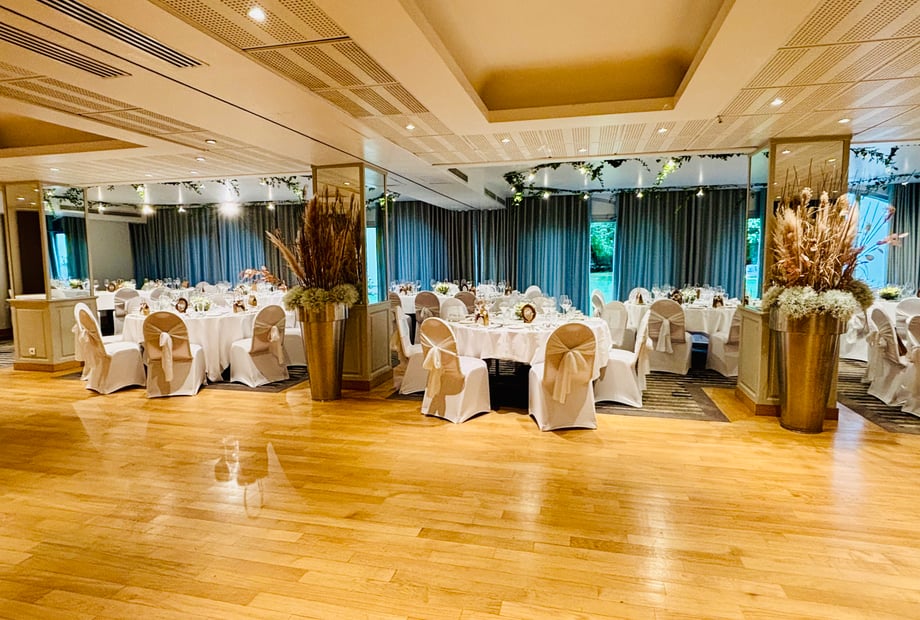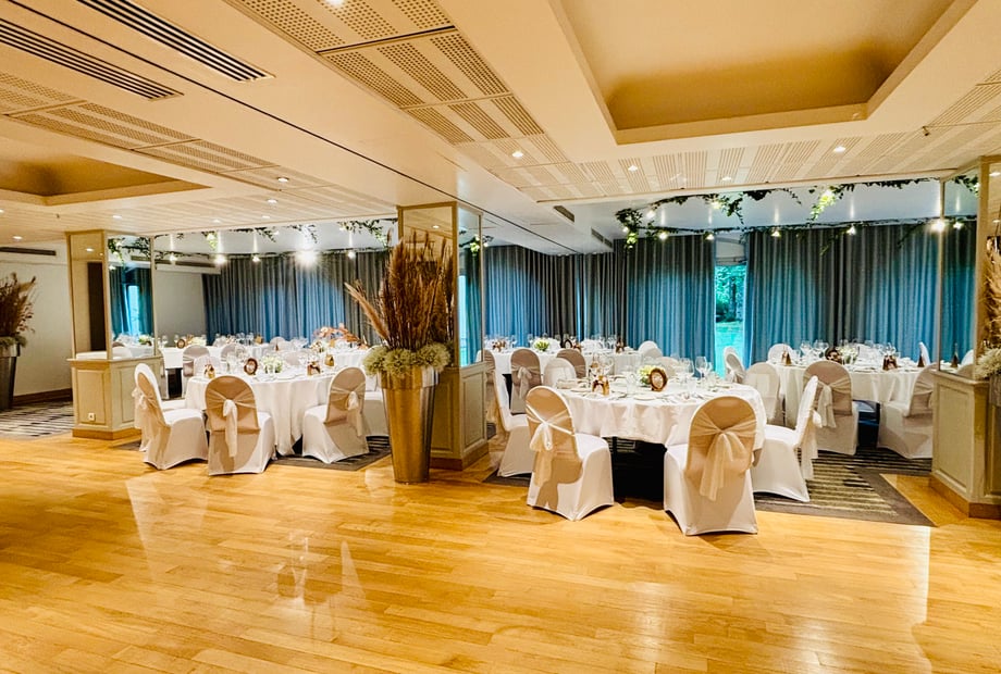A first fully modular room can serve as a backup solution or host additional moments of your reception. It opens onto a terrace with direct access to the park, offering brightness and comfort.