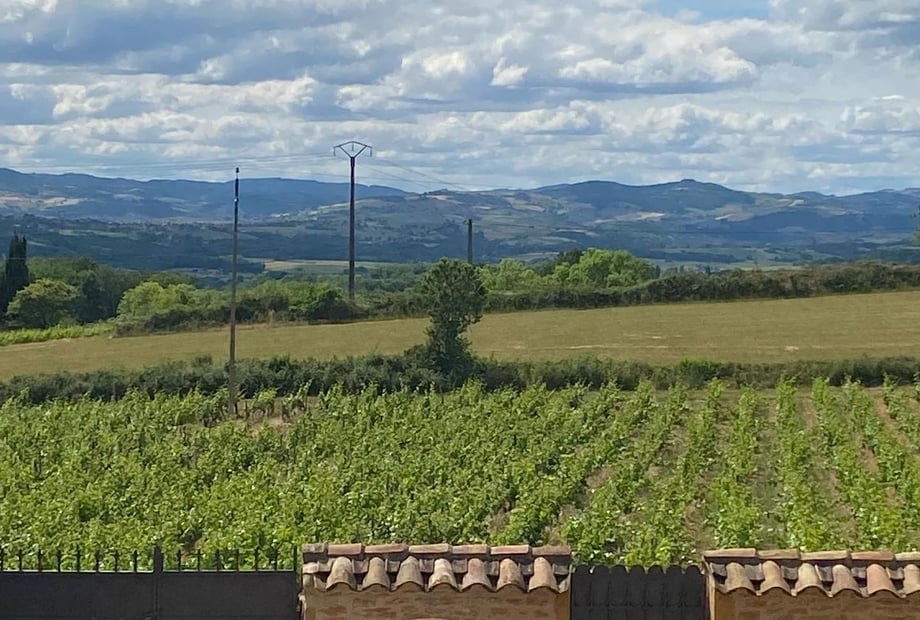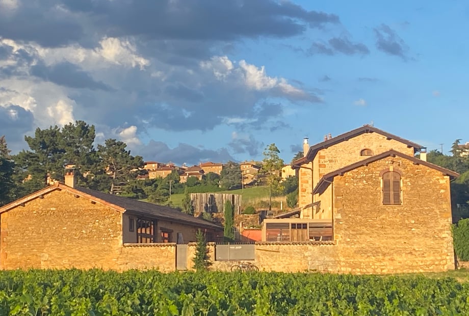 but also the view of the vines and the setting sun opposite, the village of Charnay above.