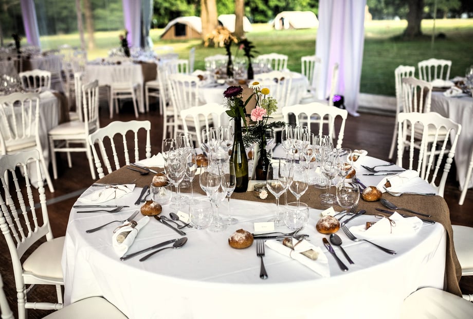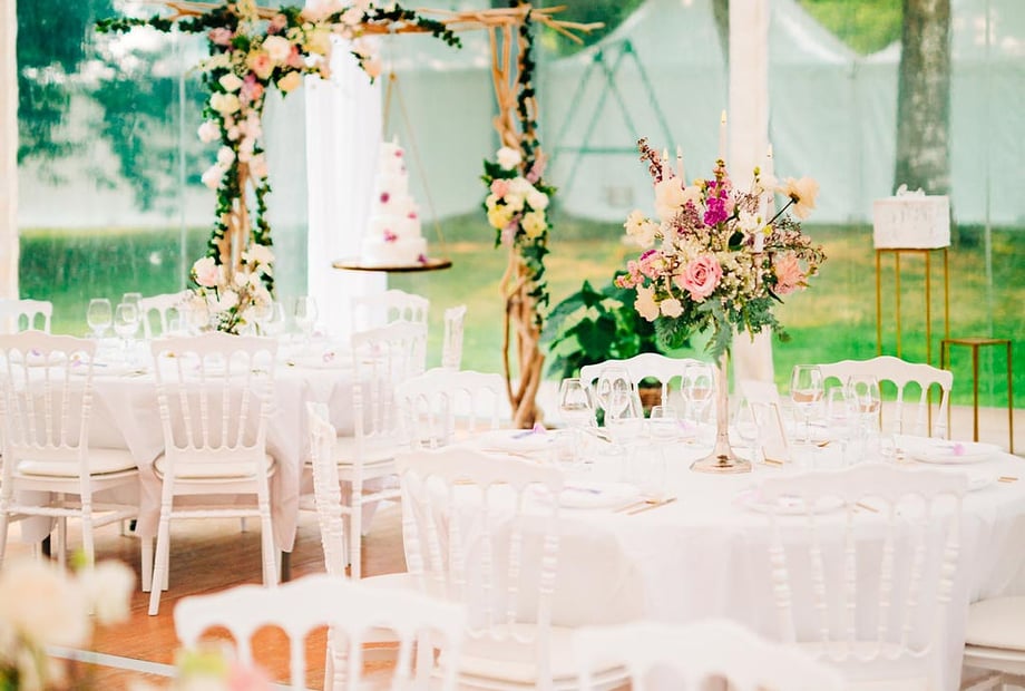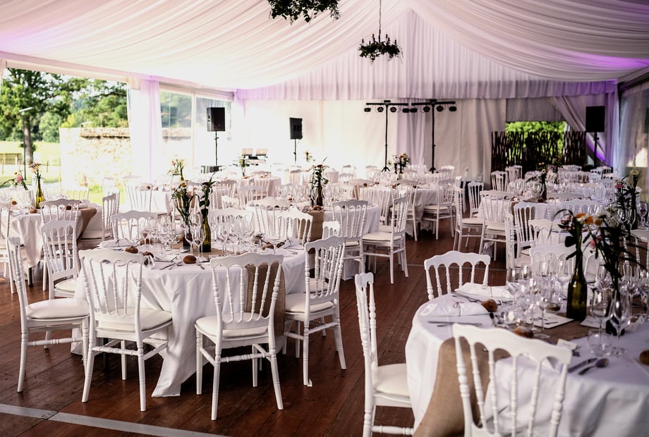 • La structure de réception de 350 m² avec parquet et mobilier