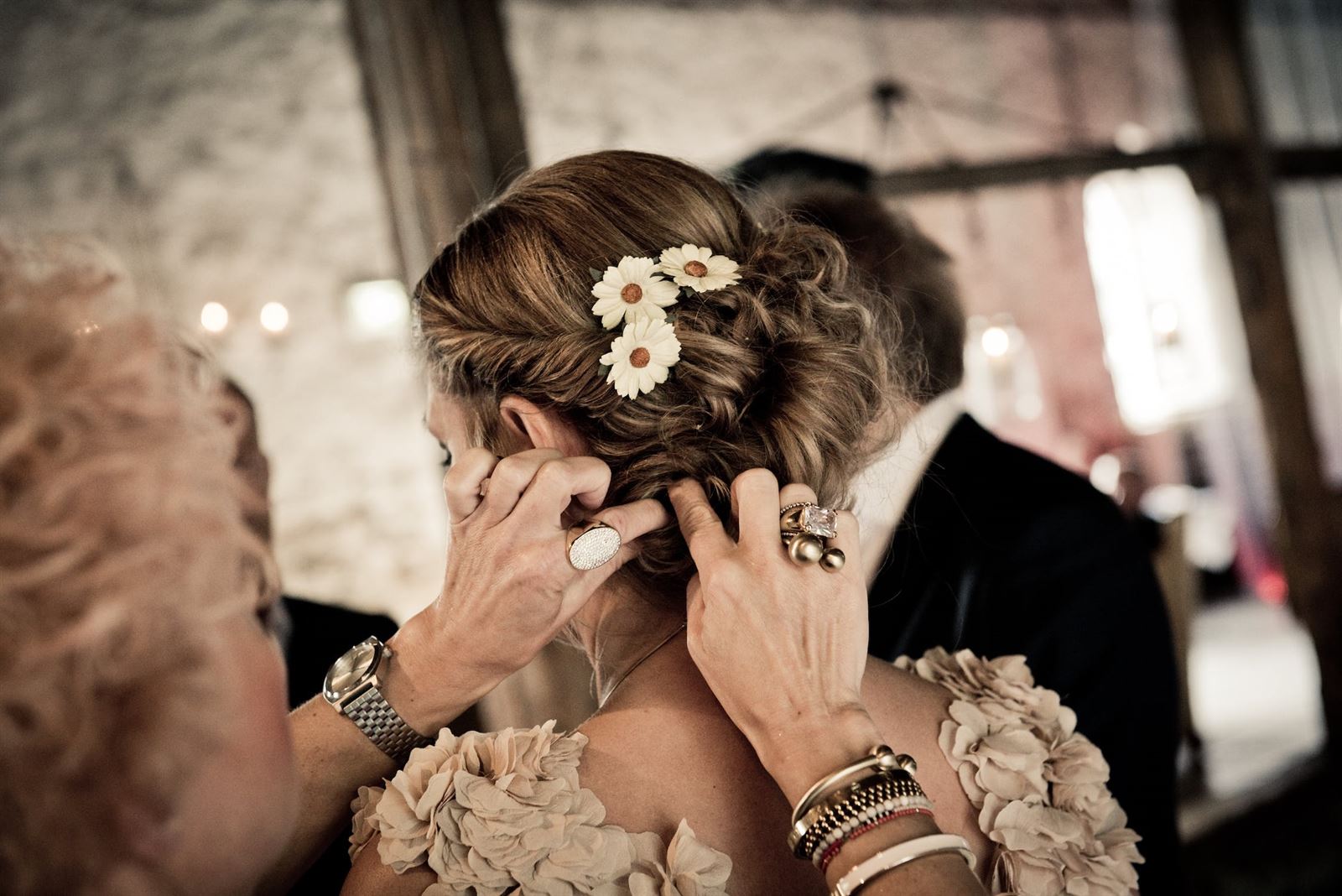 - Pour une coiffure plus spéciale, mais en conservant vos cheveux détachés, vous pouvez toujours utiliser un joli accessoire, comme une couronne de fleurs. Cette idée s’adresse davantage à la mariée qu’à une invitée. Pensez donc à cette option au moment de commander votre bouquet, afin de pouvoir le combiner avec votre coiffe.