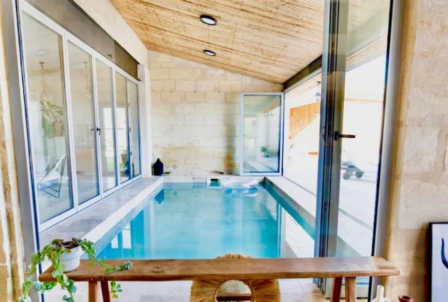 Ancien domaine viticole à Tresses, à 15 min de Bordeaux : salon chaleureux, jardin paysager, piscine, tente nomade et hébergements sur place. Privatisation totale, accès facile, atmosphère élégante.