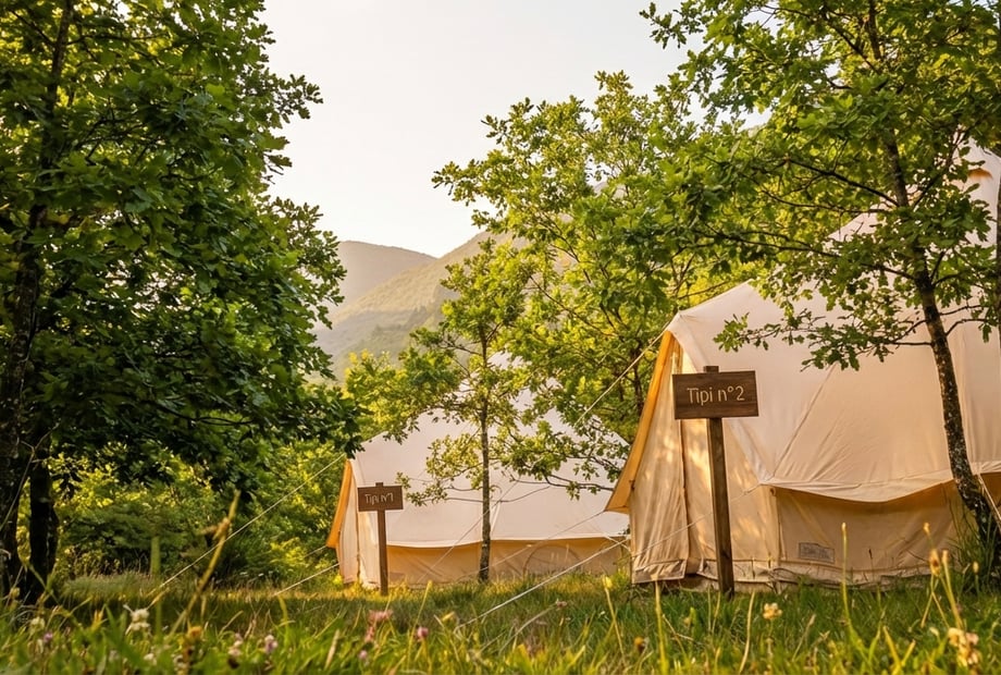 Ils peuvent mettre en place un véritable « village des invités » en installant de grands tipis de 20m² tout équipés qui peuvent accueillir maximum 6 invités chacun offrant une expérience inoubliable en pleine nature !