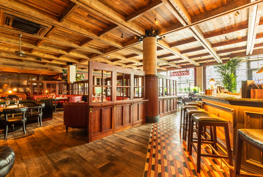 At the centre of it all is Doolally’s 360-degree bar — the social heart of the restaurant and a natural magnet for good times. It creates an easy, lively atmosphere where guests can mingle, move, grab a drink, and feel part of the action all day and night.