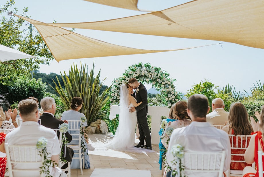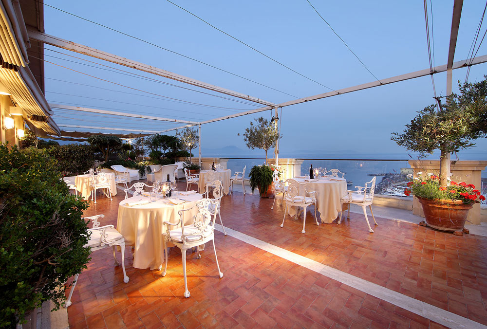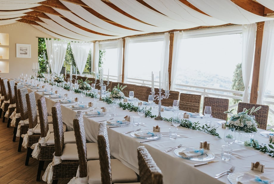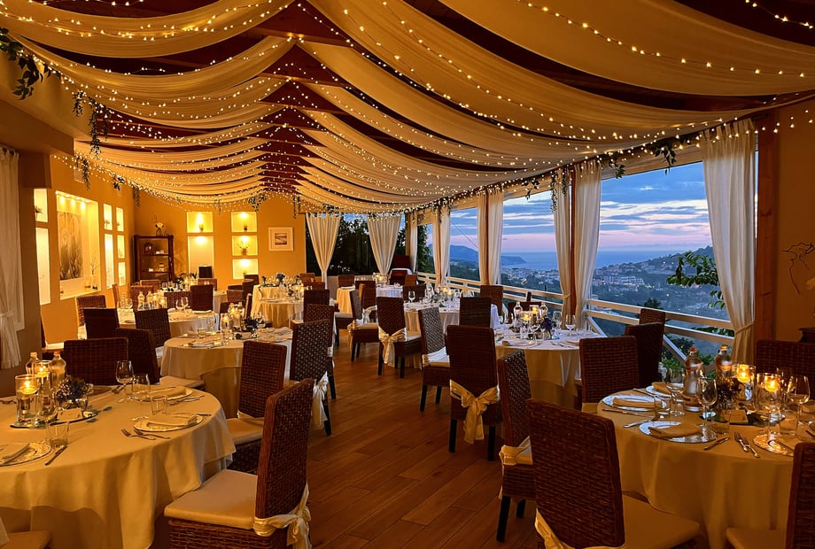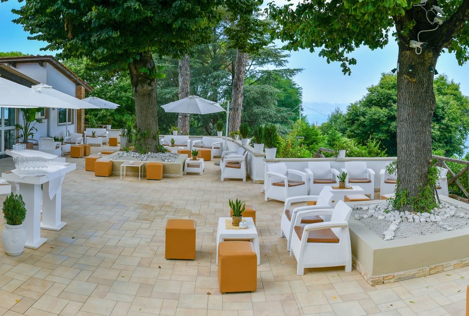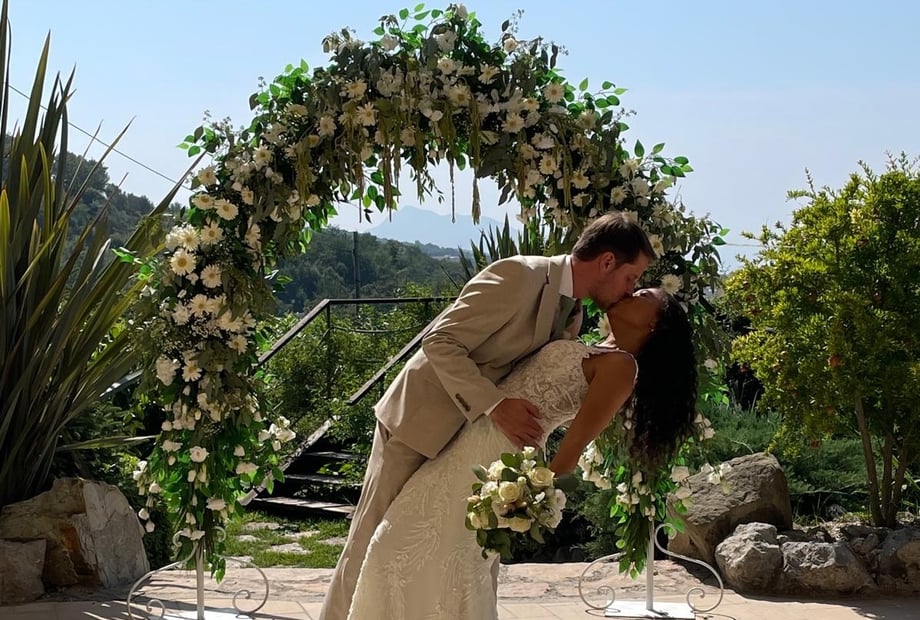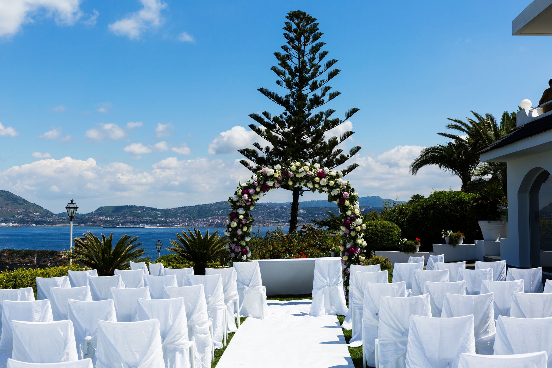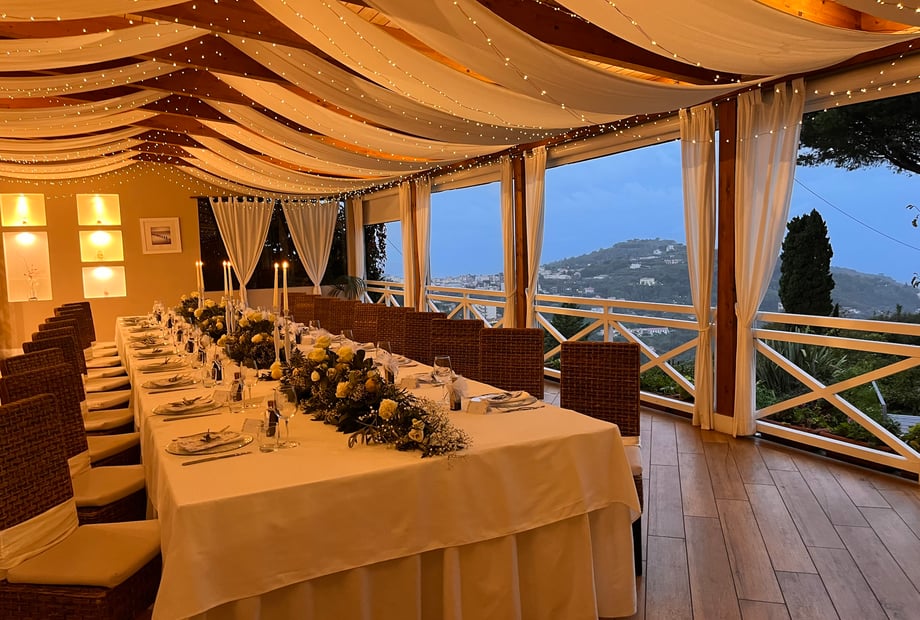 Boasting breathtaking views of the Isle of Capri, the Bay of Naples, and Mount Vesuvius, the venue offers a magical setting filled with picturesque backdrops for unforgettable wedding photos. For those seeking a celebration immersed in the vibrant Mediterranean countryside, this elegant hillside venue provides both charm and sophistication.