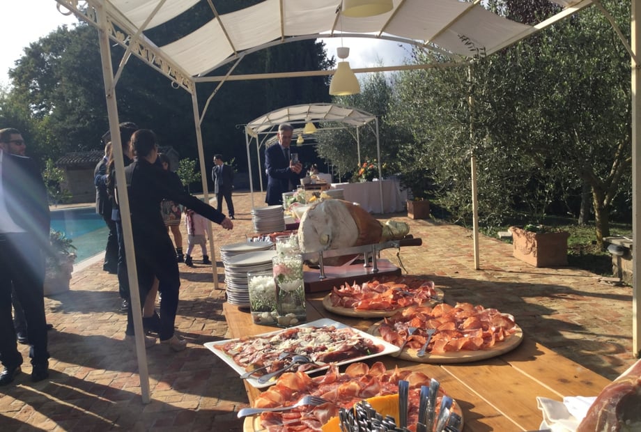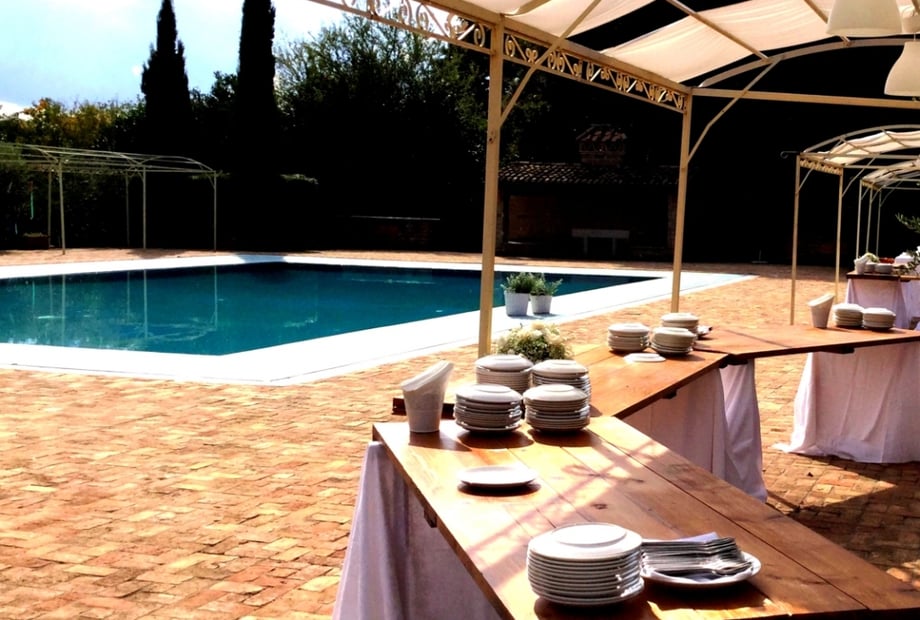 The venue excels for destination wedding weekends. On-site chalets (40 sqm, sleeping 4 with kitchenettes, wooden beams, terracotta floors) mean you and your loved ones stay together, turning your wedding into a mini-holiday. Guests rave about morning-after pool days, exploring Trevignano Romano's lakeside beaches, or easy day trips to Rome's treasures. Menus feature house-made Italian cuisine with excellent local wines, served in light-filled spaces or al fresco amid olive groves. Extend your celebration into a full weekend! Our tailored packages include on-site chalets for all guests, unlimited pool access, and full board (breakfast, lunch, dinner with wines) the days before/after your wedding. Perfect for relaxed mornings by the lake or post-ceremony pool parties. Inquire for custom quotes.