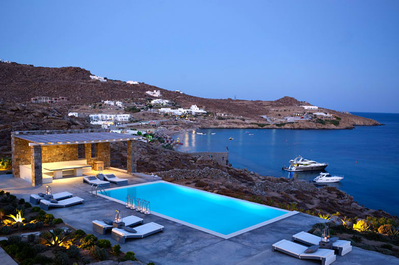 Situated in the south of Mykonos, with sea views stretching to the islands of Paros and Naxos, and between the beaches of Paradise and Paraga, this luxury property to rent comprises two superb attached villas and two swimming pools. The vast outdoor spaces, and the close proximity of a church, also make this property very suitable for weddings.