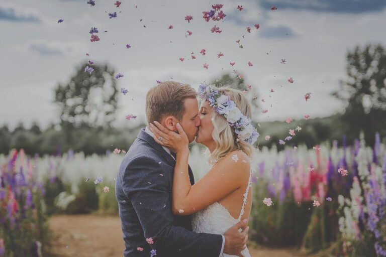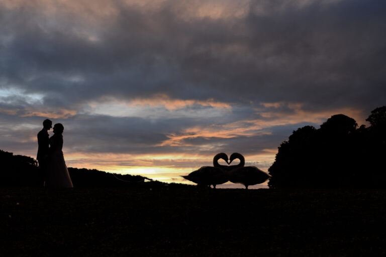 Taking inspiration from nature and animals for your wedding can be a creative and unique way to add an subtle romantic touch to your big day. Consider a romantic silhouette shot like this one captured by John Price Photography: “The bride and groom requested an evening sunset silhouette shot. I noticed two real swans posing perfectly just slightly apart – and had to edit and bring them in together to form the perfect heart.” There are many other romantic animals that can inspire a magical Valentine’s-inspired atmosphere. For example, doves and wild horses, or butterflies (which symbolise transformation), and dolphins (which embody playfulness).