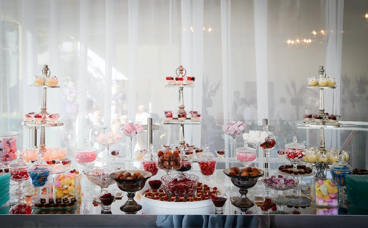 Sweets and chocolate are among the highlights of Valentine’s Day. After all, it’s not just about the love and romance, but also the fun and indulgence! Set up a sweet buffet or dessert station at your wedding reception, like this one by Rhubarb Hospitality Collection, or go with a funfair and candyfloss theme. For fun sweet station reception ideas, consider a doughnut wall, popcorn bar, S’mores station, cupcake and cookie tower, macaron bar, or mini desert shots.