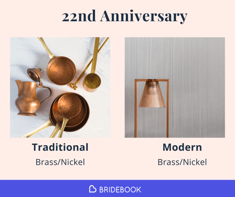 The modern 22nd anniversary gift is also copper and is also actually borrowed from the traditional 7th anniversary gift. So, if you didn’t give your partner something made from this shiny bronze-coloured metal back then, now might be the perfect opportunity to do so.