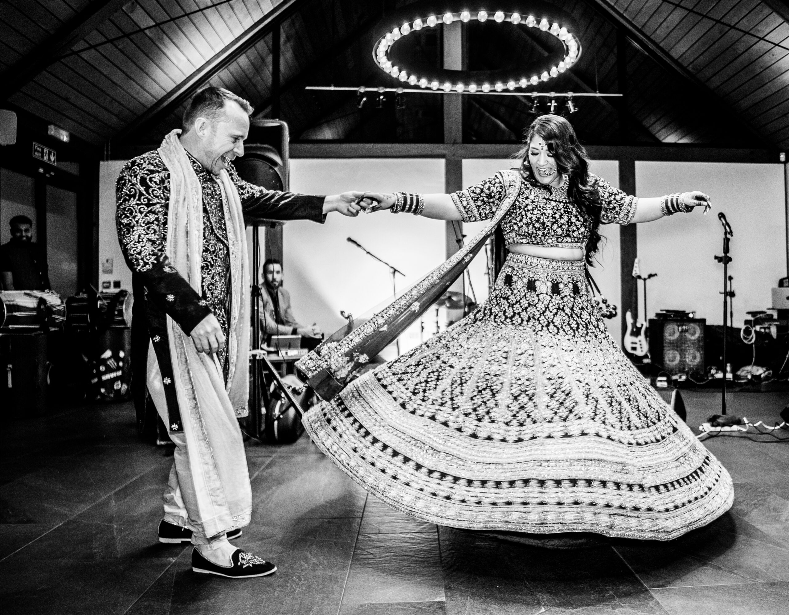Why we shortlisted this photo: We love the energy and dynamism in this photo, especially of the bride spinning in her vibrantly patterned dress. There is a real sense of joy in the moment.