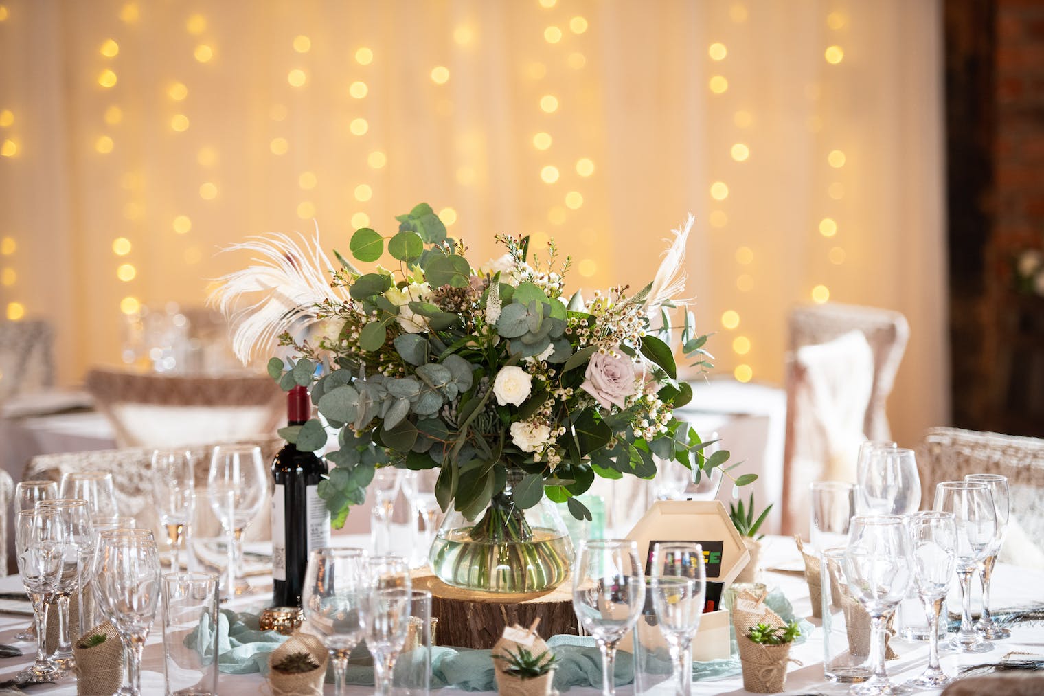 Greenery décor has become increasingly popular for its natural and elegant appearance. Foliage such as eucalyptus, ferns, or ivy is typically more affordable than large floral displays and can be used throughout your venue.