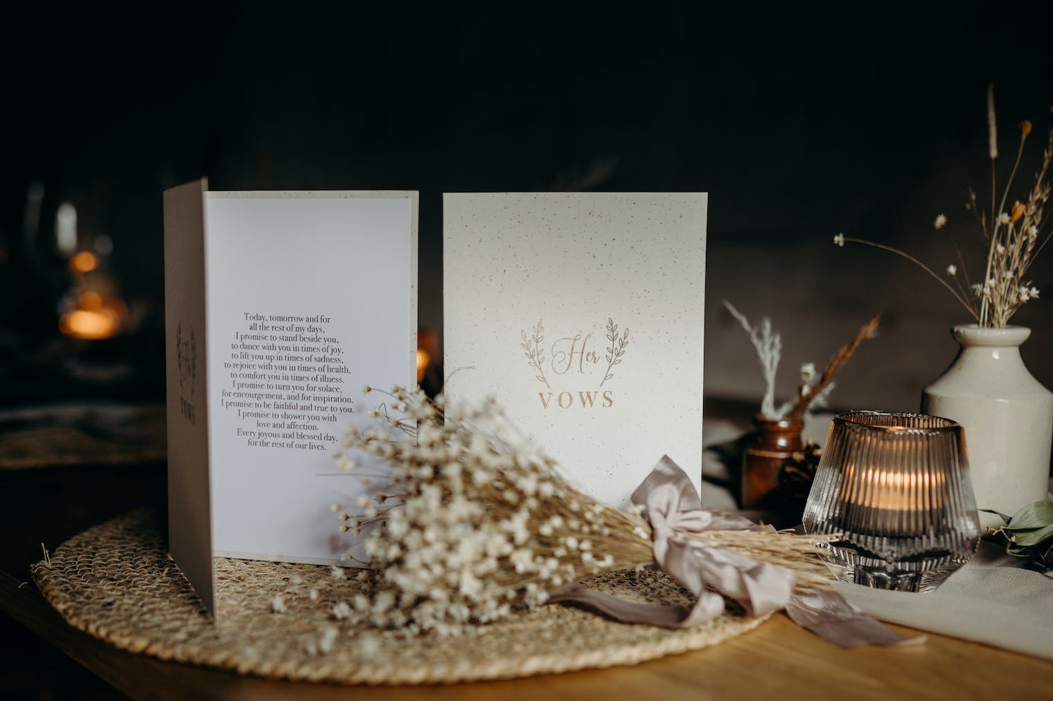 Usually, after the officiant welcomes you and your guests, you’ll go straight to the vows. If you’ve chosen to have one, this may follow a reading before the rings are exchanged and you go on to sign the register.