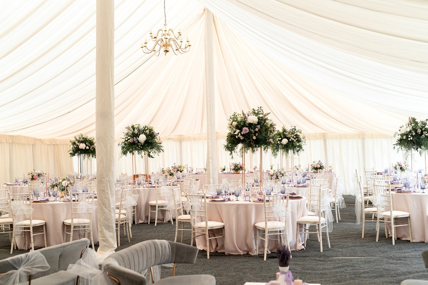 The more modern tradition for long banquet tables means that flower choices can be a little trickier, but it also means they don’t have to feature as heavily, and you can use this option to shave a little off the total bill.