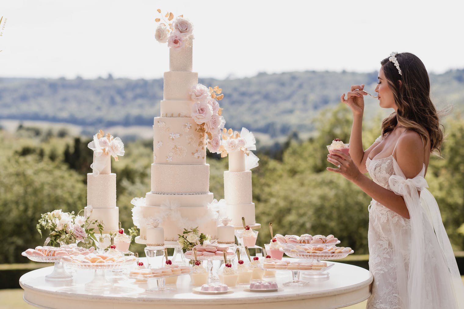 If this doesn’t suit your timings and you want your dessert before the cake-cutting commences, why not have a smaller, decorated one-tier cake as your main cake for the ceremonial cutting, and a plain, un-decorated version pre-cut and served as dessert for the beforehand?
