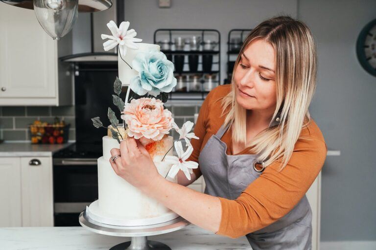 Part of the joy of hiring a professional cake maker is that it’s stress-free and convenient, so you can enjoy your big day without worrying about dodgy ovens and equipment or glazes and ganaches that refuse to set. It’s important to weigh up what matters most to you. The DIY route may save you some money, but it most likely won’t save you time or stress. All of the considerations we listed for asking a friend or family to bake your cake apply here as well.
