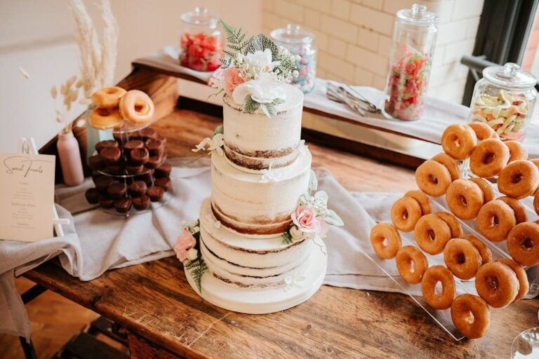 It might not seem like the most obvious choice for a wedding, and it isn’t traditional, but a shop-bought cake from your favourite supermarket can be affordable and delicious. There’s a wide range of shapes, sizes and flavours to choose from, and if you pick up some pillars you can even create a multi-tiered cake yourself. All you have to do is get a little creative with the decorations and be more flexible with your cake vision than if you were to commission something custom-made. Or, you can have a small simple cake for your ceremonial cutting, and a number of shop bought cakes put out for guests to eat afterwards.