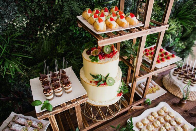 Do remember that unlike a professionally made show-stopper, a dessert table is unlikely to be able to be out on display all day. Consider whether you really want a doughnut that has been out in a heated room for 7 hours! Many professional bakers offer brownie towers, which means that whilst saving a little bit on the budget, you can still get all the benefits a professional brings. The tower of smaller cakes may also mean you don’t have a cake to cut. A small store-bought cake in addition is a good way of still having that iconic cake-cutting moment.