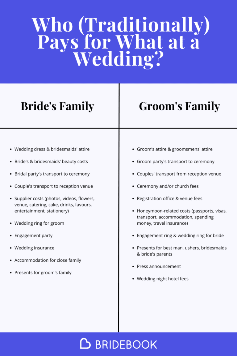 If you’re looking for a list of who traditionally pays for what, check out our quick reference cheat sheet below: