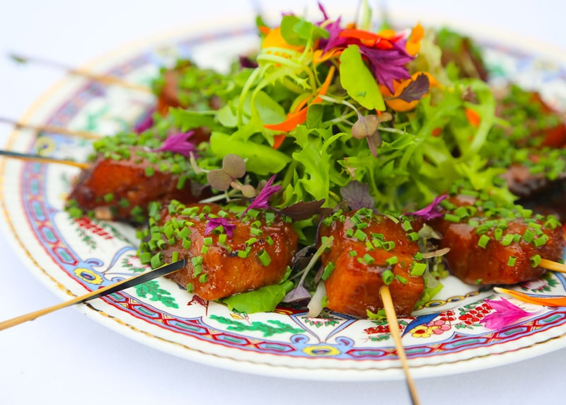 Getting married in Wales, couples can enjoy traditional Welsh cuisine, including lamb and seafood, with wedding caterers that offer a variety of dishes using locally sourced ingredients.
