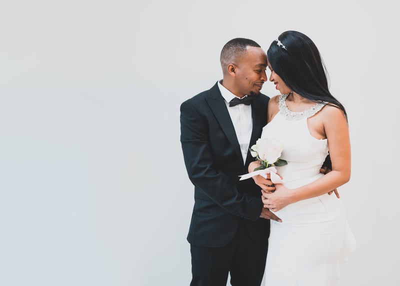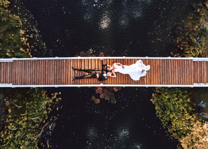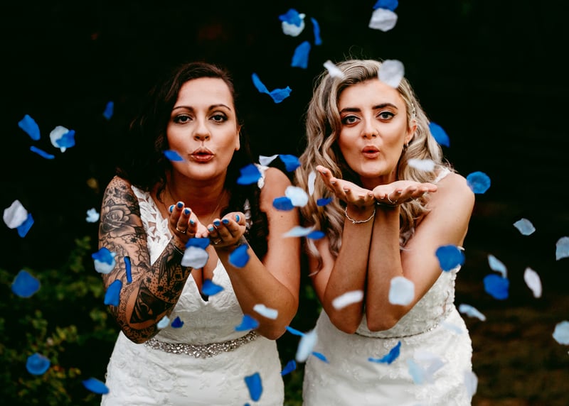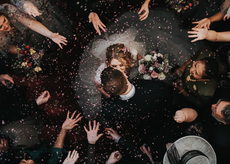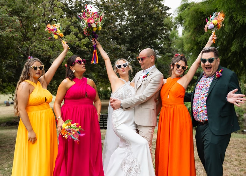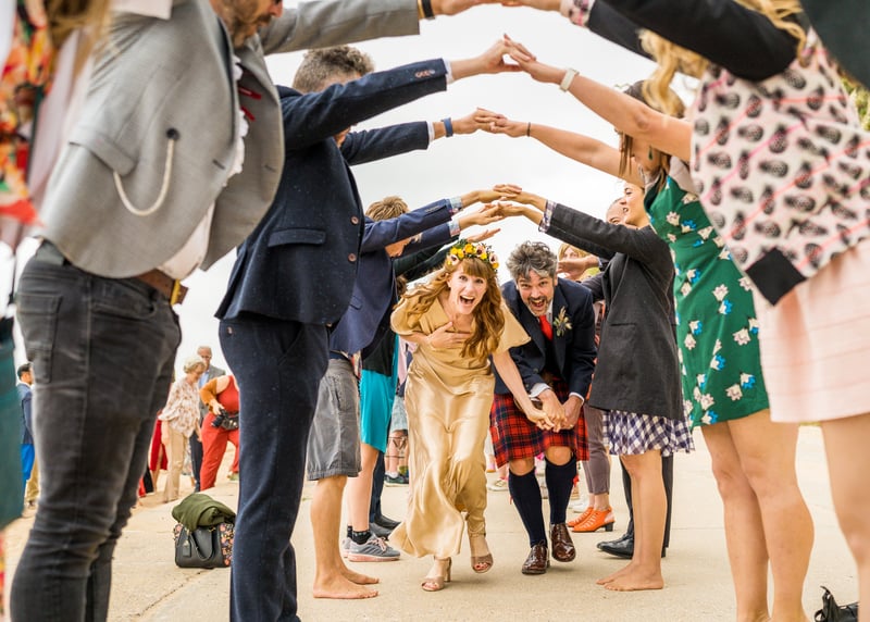 An increasingly popular pose is the “first look” – if you’re planning on having a sacred moment between the couple-to-be-wed before walking down the aisle, this can make for an exceptional photo and definitely one for the memory book. Another fun idea, if you’re wanting to make a real impact, is the smoke bomb wedding photo – having streams of brightly coloured smoke envelope the wedding party as they make their way towards the photographer. This one not only makes for a striking photograph, it’s also a lot of fun to bring to life.