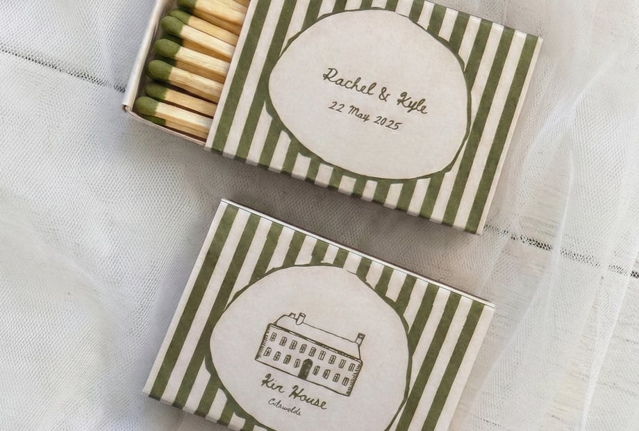 At The Laldie, we design bespoke wedding matchboxes and creative paper goods, crafted entirely to suit each couple and celebration. From matchboxes to invitations, menus, and napkins, every detail is thoughtfully designed to reflect your aesthetic, venue, and story.