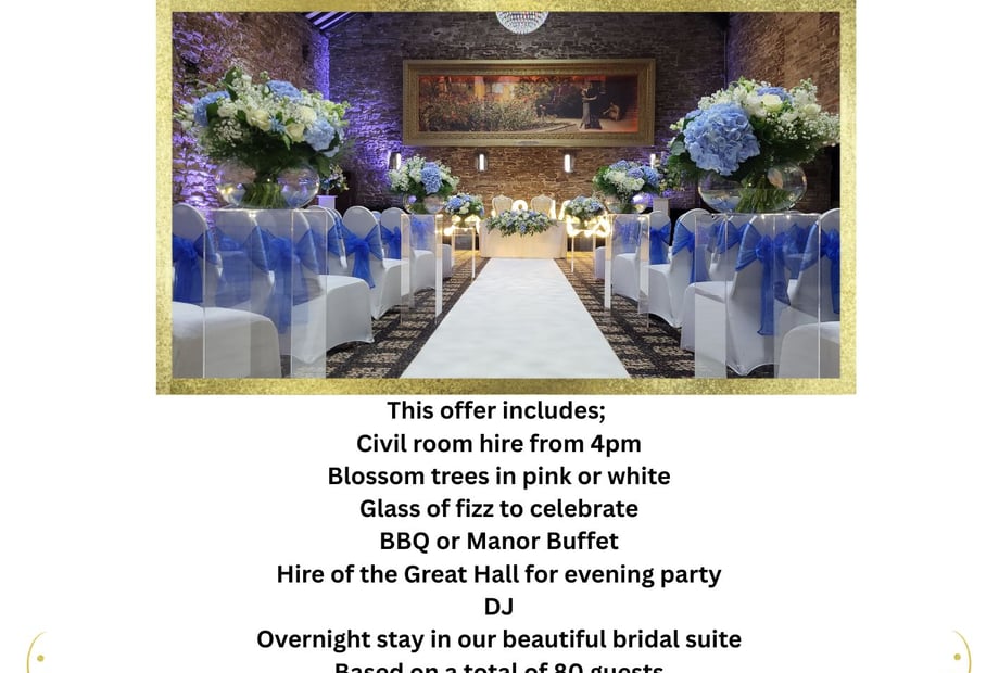 2026 Jan - March Special Winter Offer with catering partner - £8750 venue hire + 3 course meal + accom