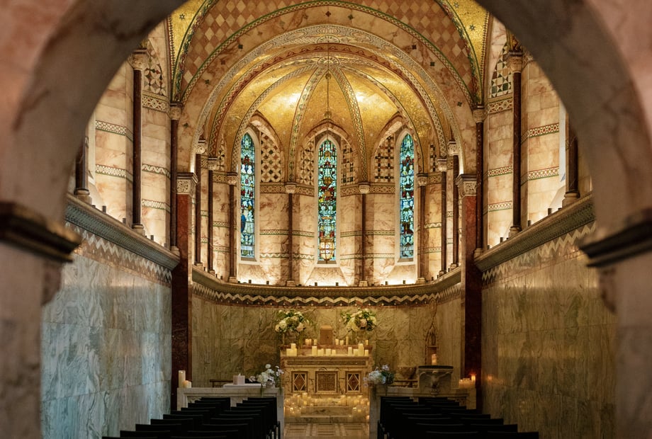 A Grade II* listed building nestled in a little square in the heart of London's Fitzrovia. This tiny chapel has hundreds of golden stars on its vaulted ceiling and beautiful mosaics and marbles.