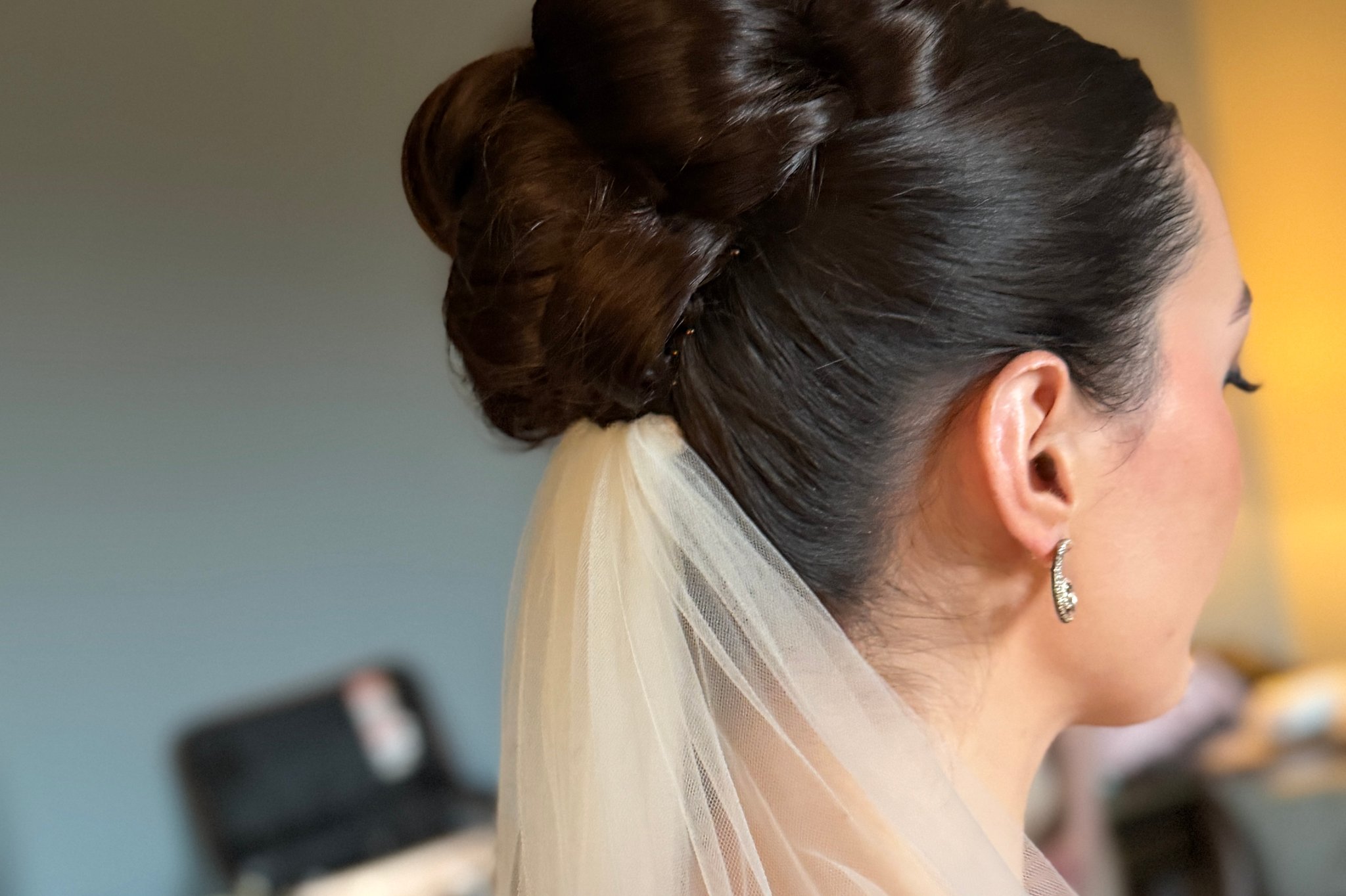 My job luckily is one that relaxes the bride no matter what is going on, on the morning of the wedding once they are sat down having hair and makeup done it's time to relax, brides often say how much they welcome the chance to sit down and relax while I create a beautiful hair style and makeup.