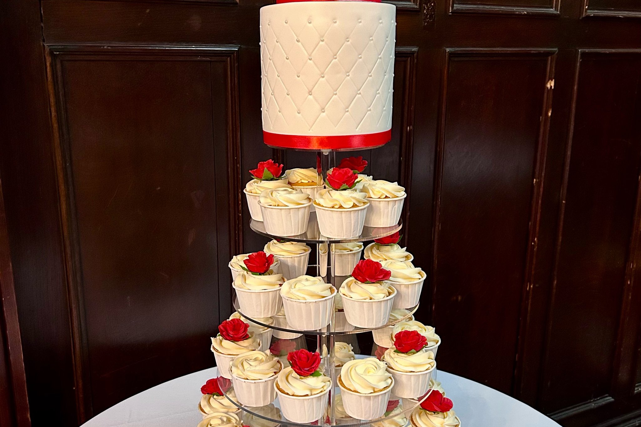 Taste is everything and every cake is unique. I make all kinds of bespoke celebration cake’s but mainly wedding cakes up to 130 portions. I also create cake and cupcake towers up to 150 portions and make personalised sugar figures including wedding couples. Introduced in 2024 are sketches of your proposed cake with a sketch to reveal video after your big day.