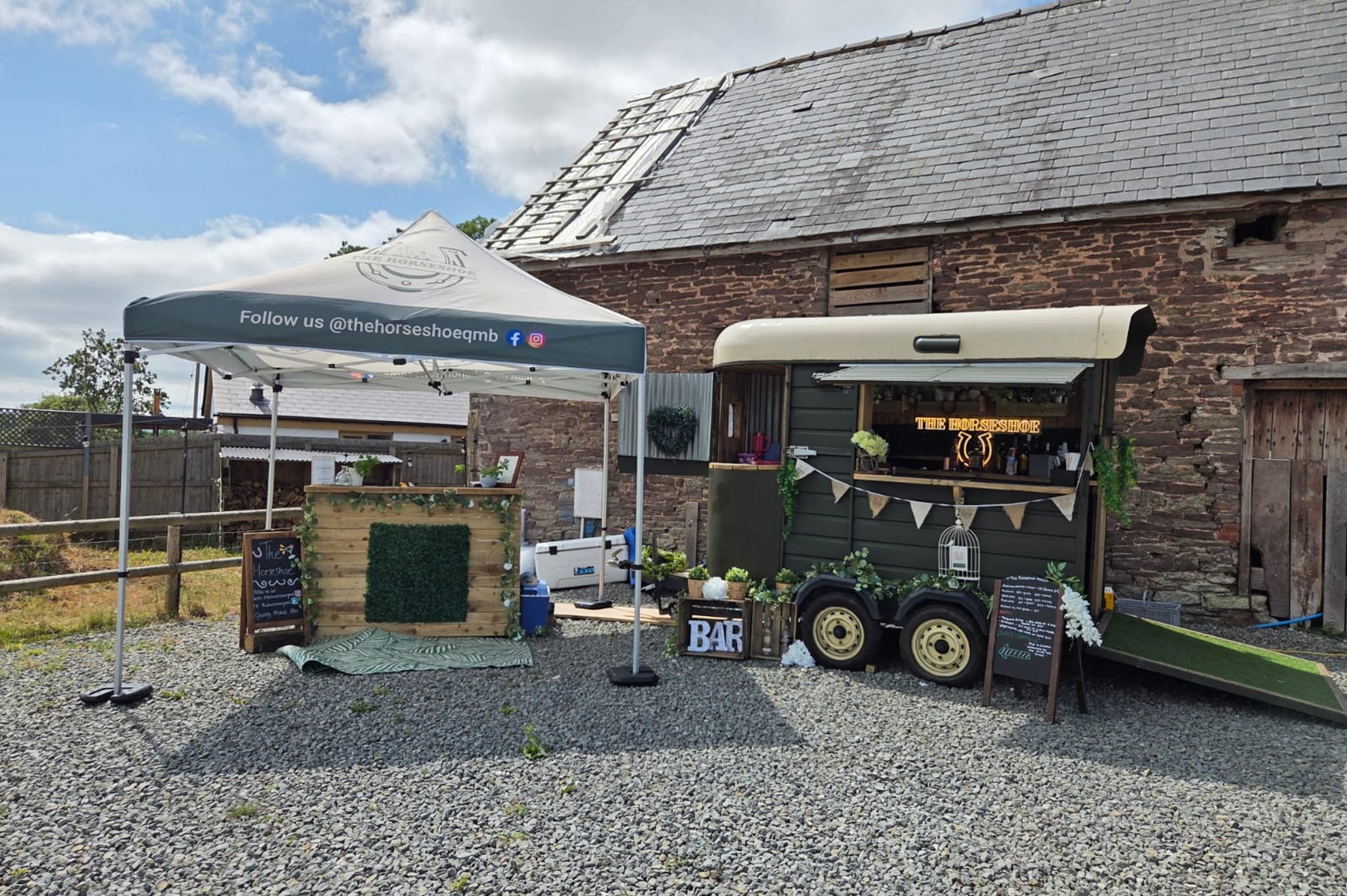 The Horseshoe Quality Mobile Bar was borne out of being disappointed with the quality and cost of drinks and characterless modern style bar at many weddings we had attended. We wanted to offer quality drinks at good prices and never run out of ice! This is what we've achieved at The Horseshoe. We provide a huge selection of high-end spirits, cocktails, wines and spritzes all using high end ingredients and all at a price cheaper than most bars and pubs. We also bring personality, humour and fun to our weddings. We boast "The Best Margarita", "The World's Greatest Gin & Tonic" and receive rave reviews for our "Horseshoe Espresso Martini". How? Years of know-how, hours of cocktail creation and quite simply, we use better quality ingredients!