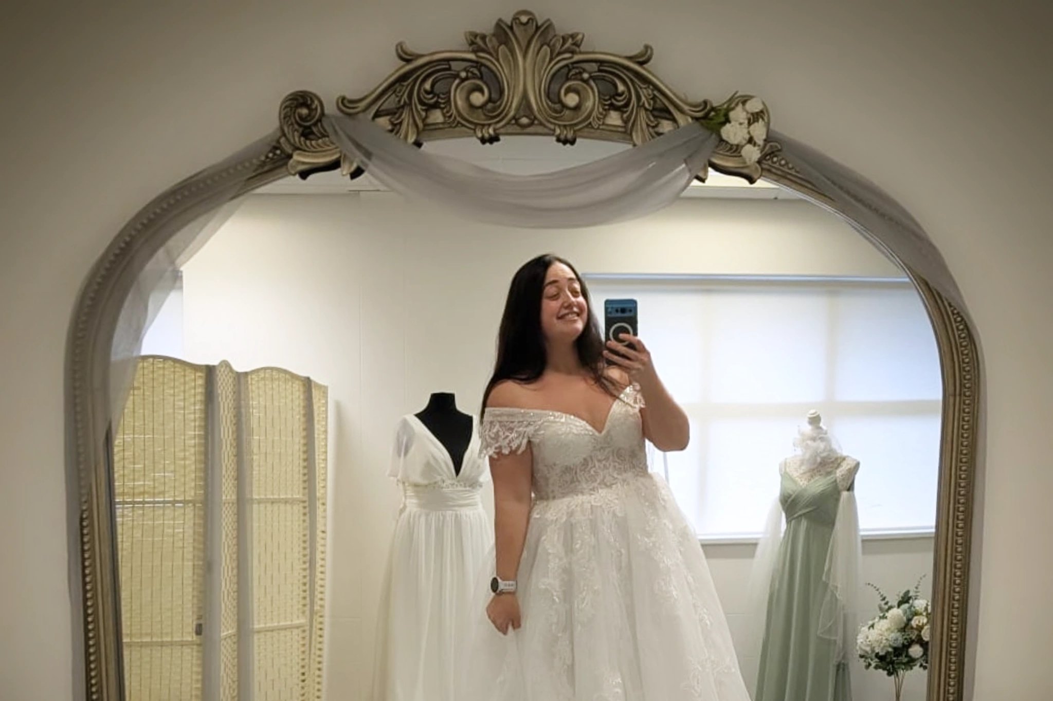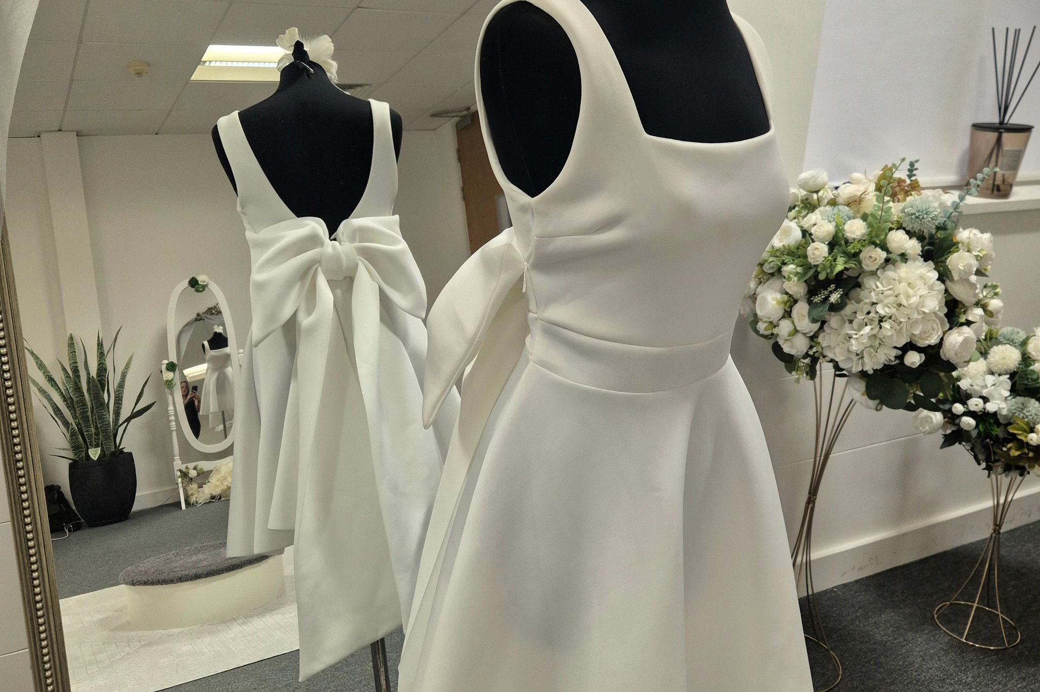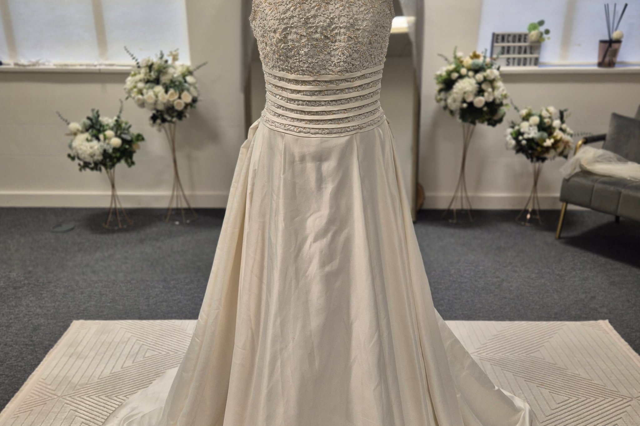 Pre loved and ex sample bridal boutique. Off the peg bridal gown shopping which means you try on and take home your dress on the same day. Wedding dress shopping that looks good, feels good and does good.