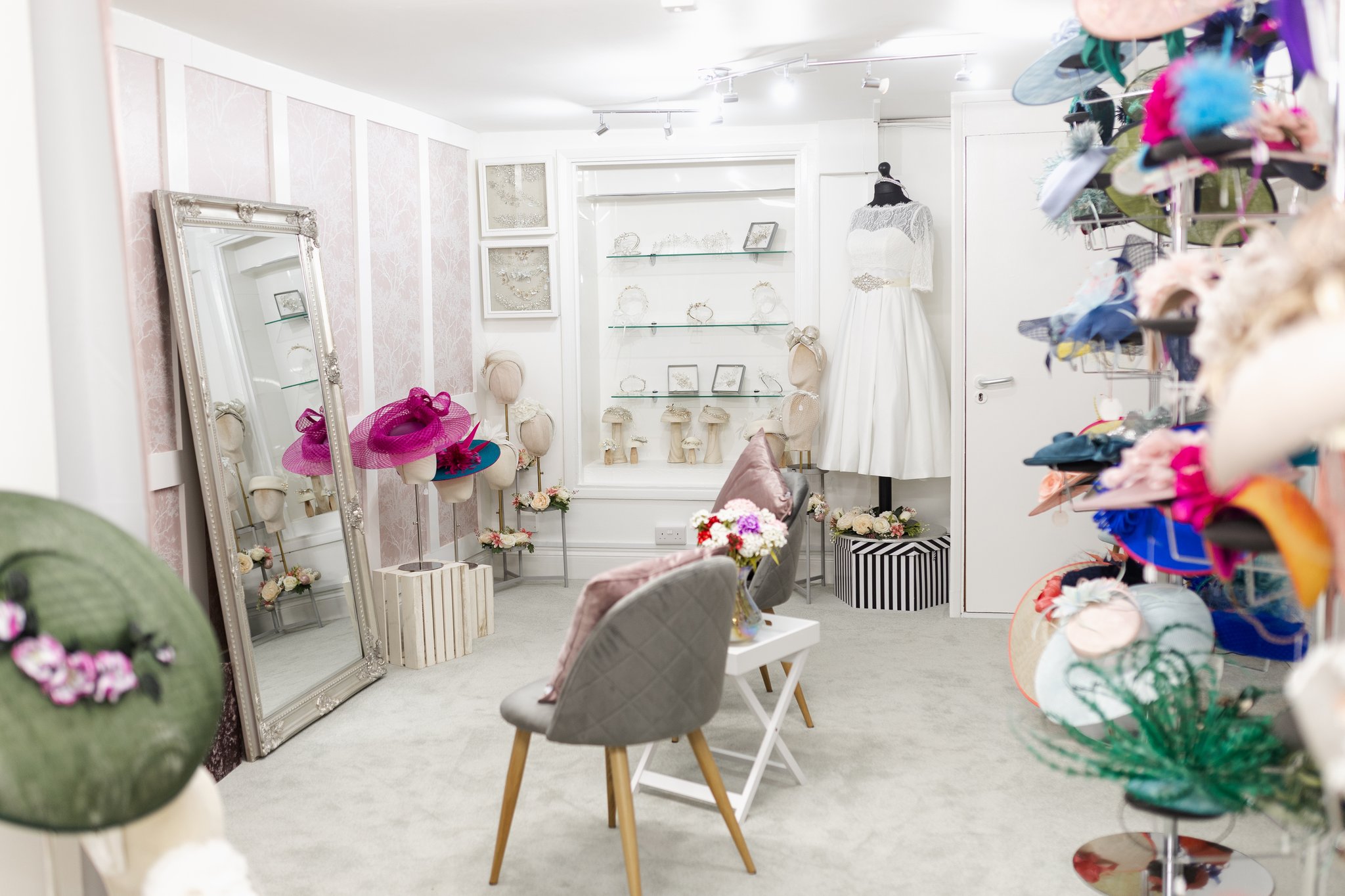 Sarah offers private, personal one-to-one consultations by appointment at her studio in Gravesend. At the studio you can discuss a completely bespoke millinery creation. Alternatively you are welcome to try on designs from The Collection for hire.