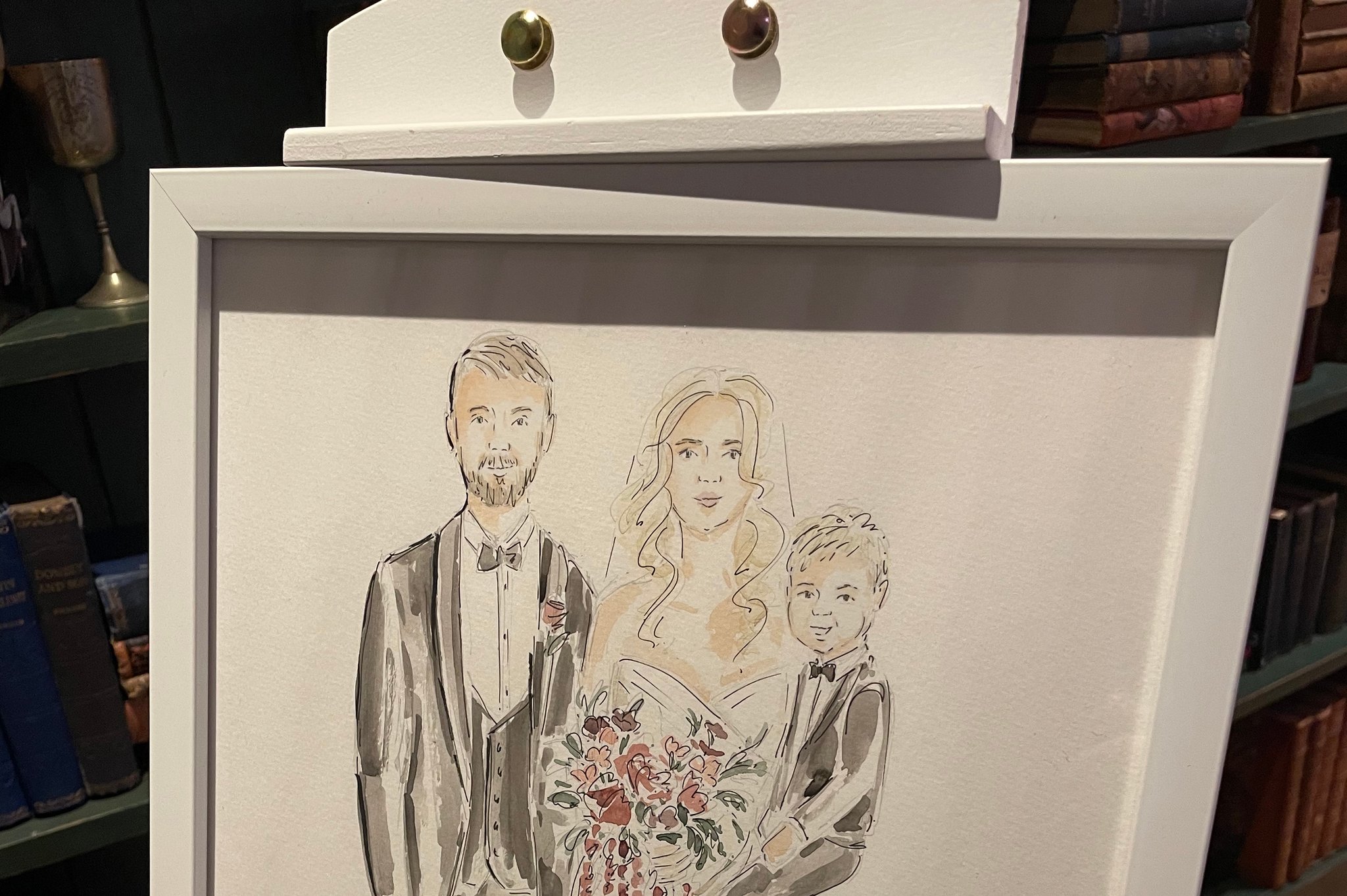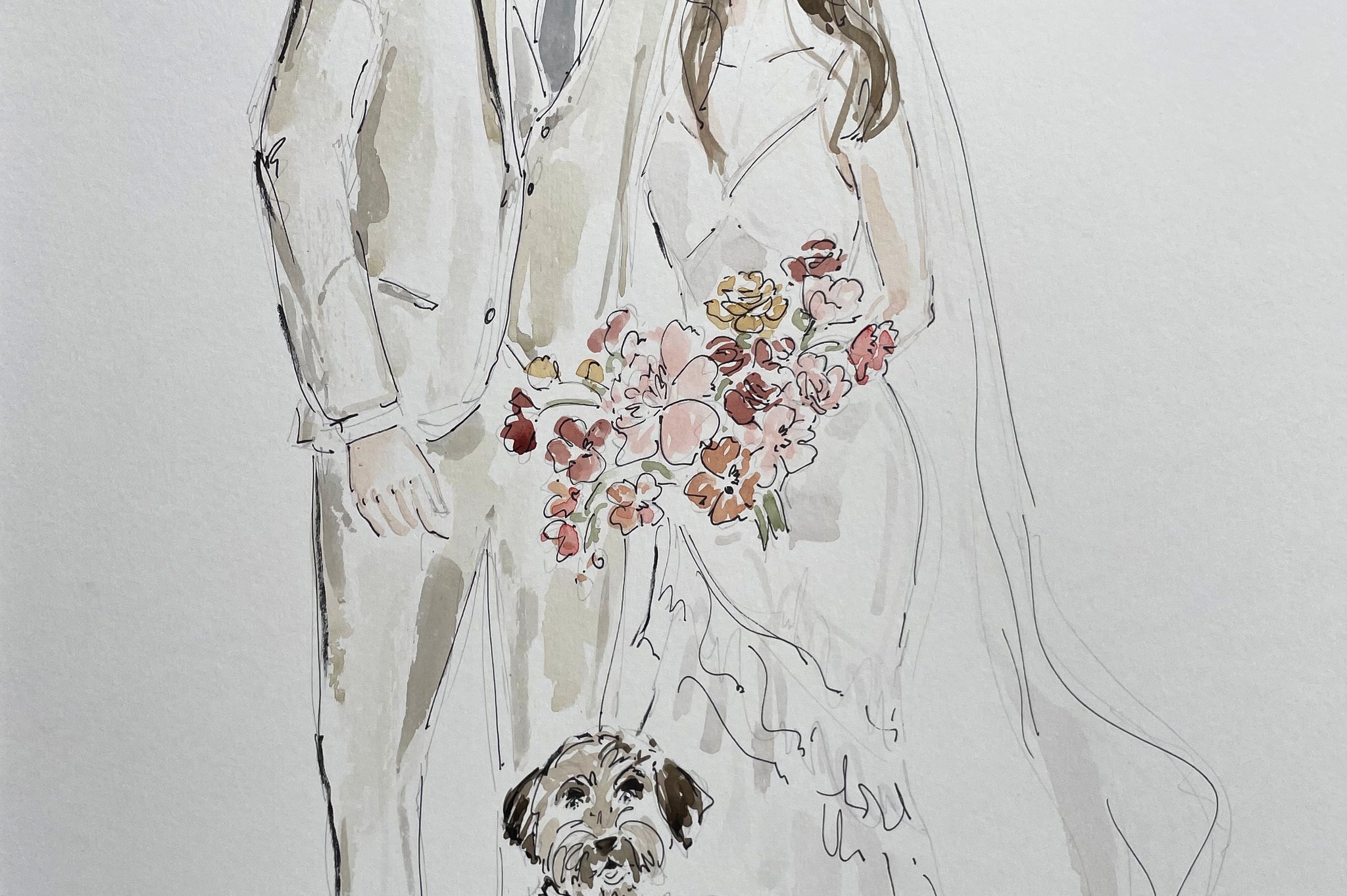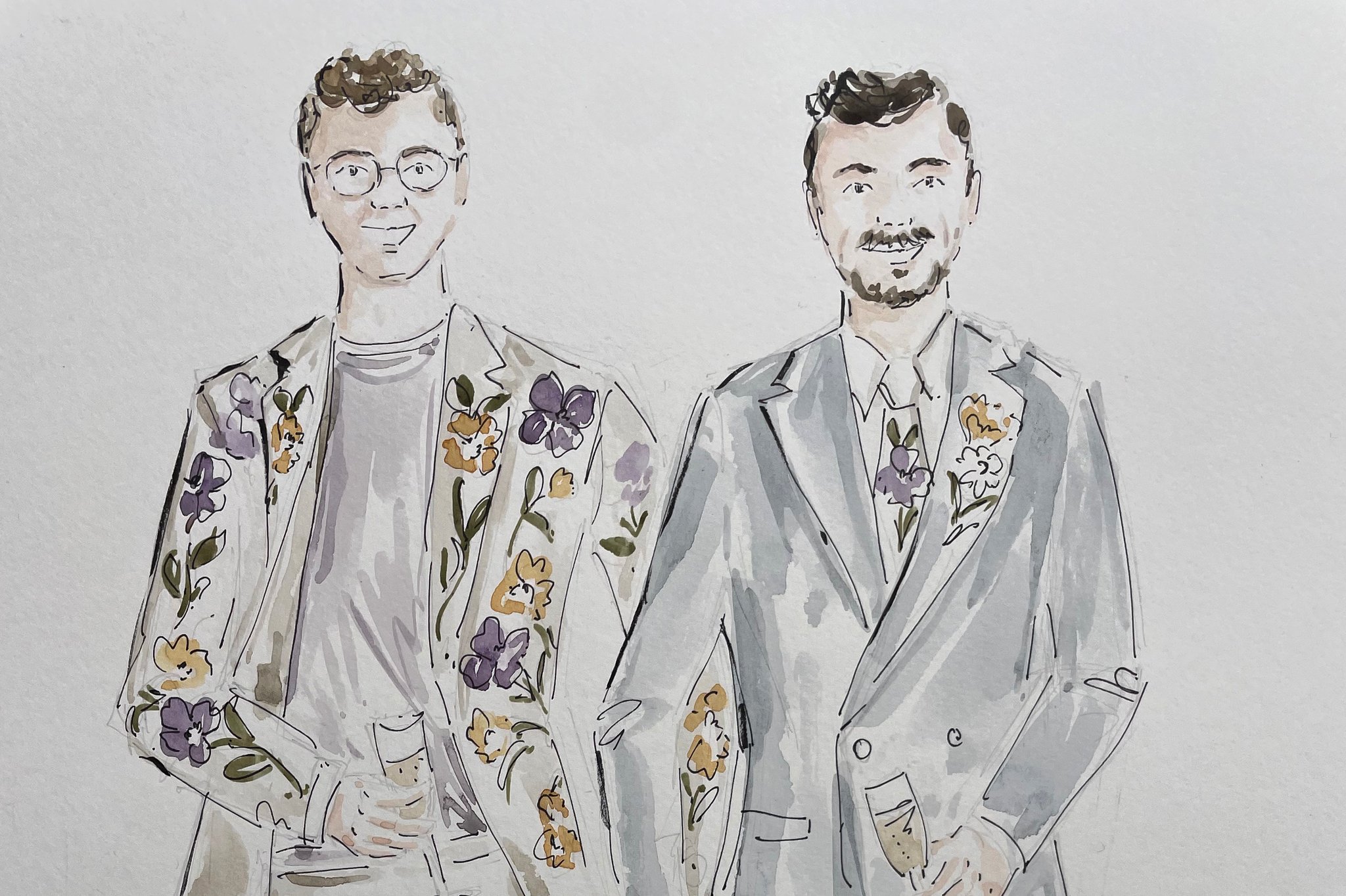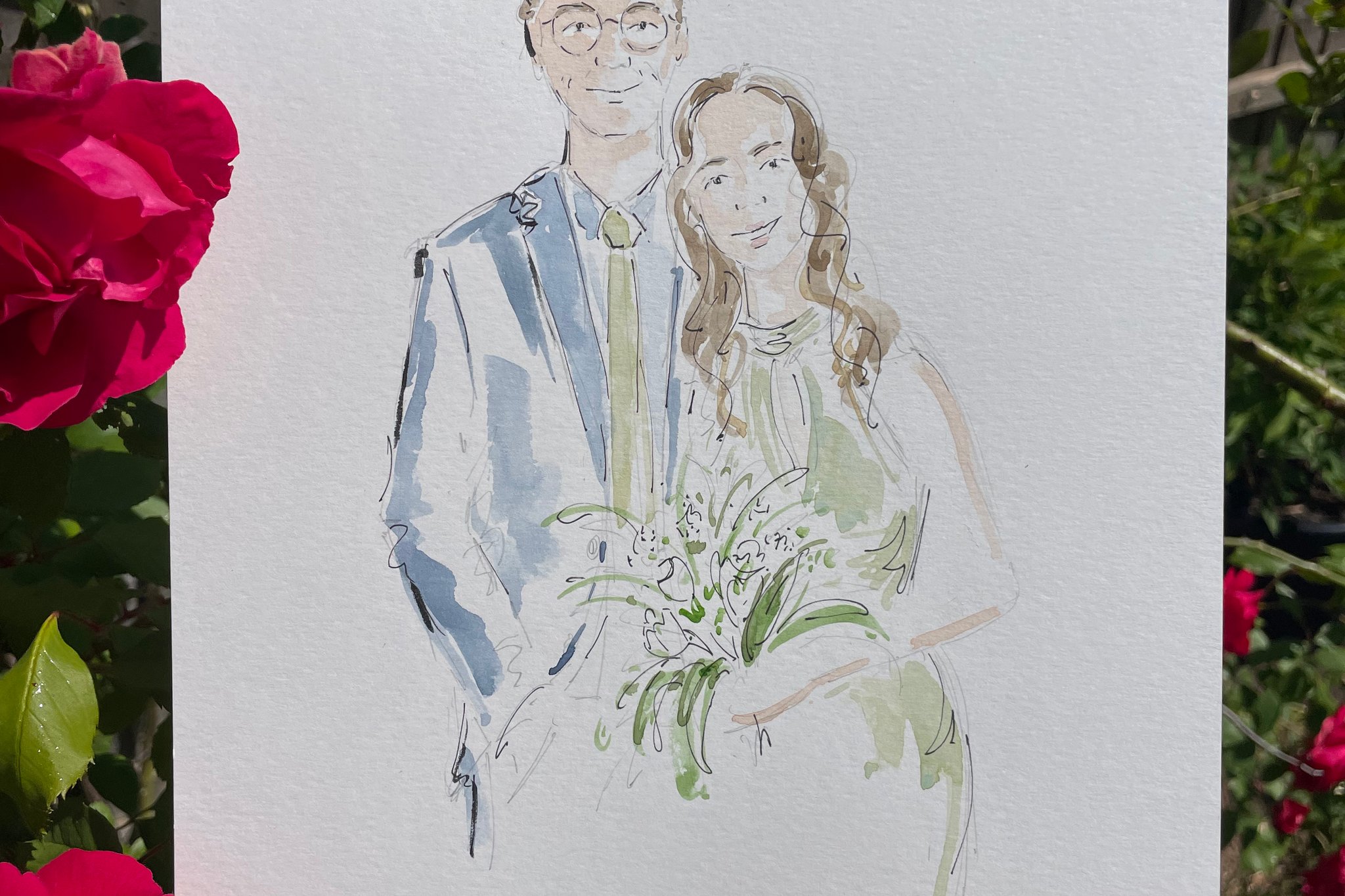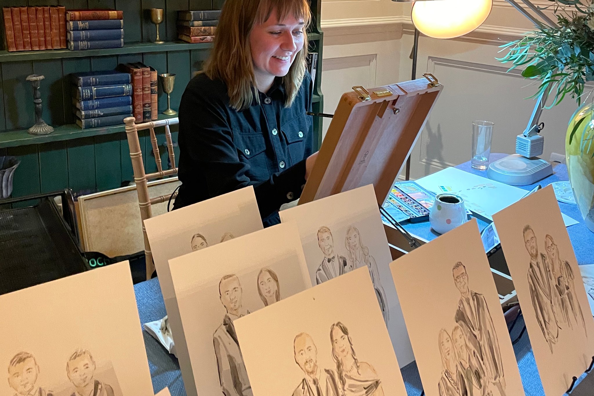 A live illustrator with 10+ years’ experience in art, design and illustration, creating elegant wedding portraits with expressive linework and watercolour that capture each guest’s likeness.