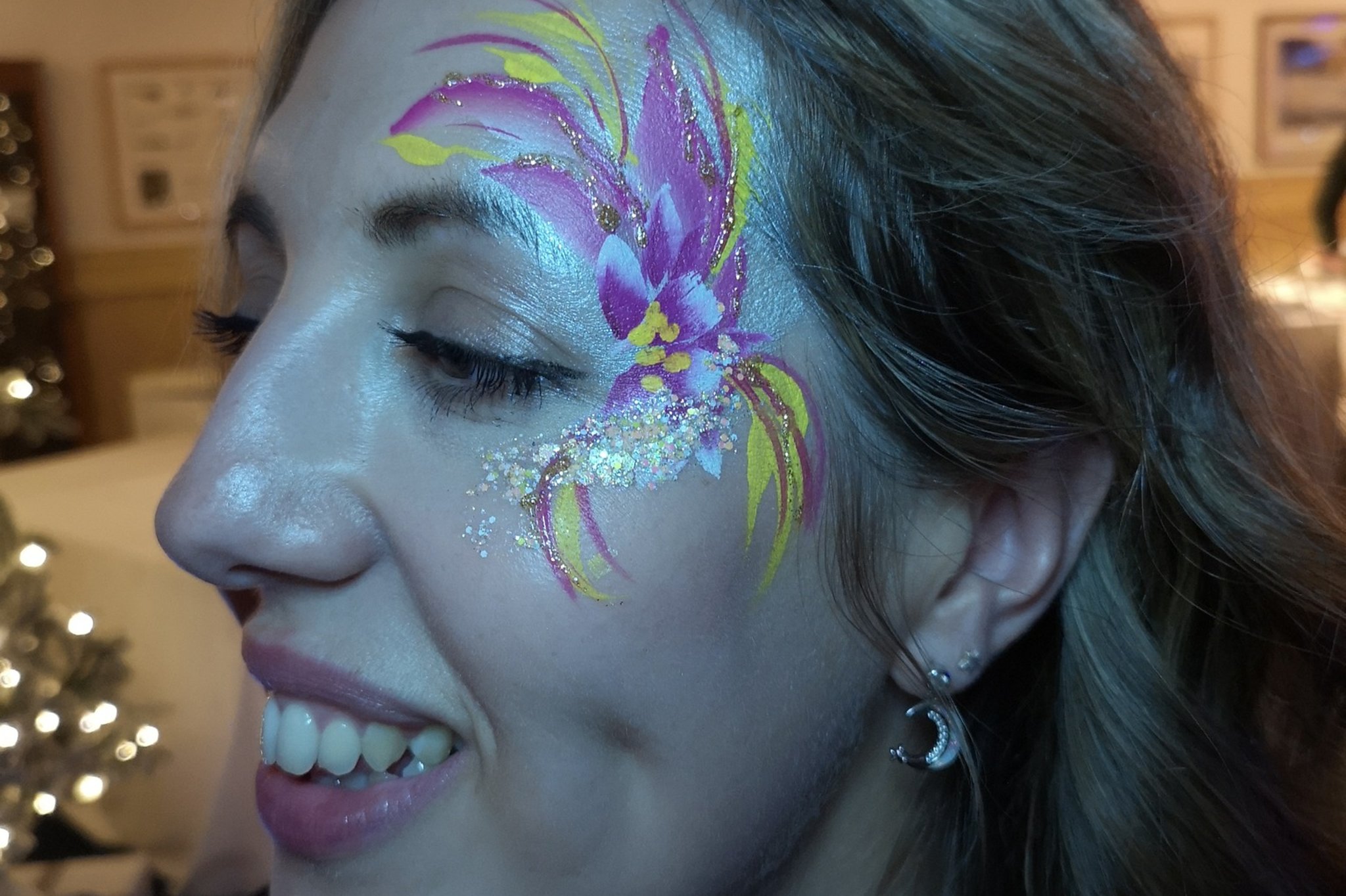 We offer two wedding packages designed around real wedding‑day needs, one for younger guests and one for adults and mixed‑age groups. Whether you want to give younger guests something fun to enjoy or offer your evening crowd a chance to dive into festival‑style face painting, glitter and UV‑reactive designs, there’s an option that fits your day perfectly.