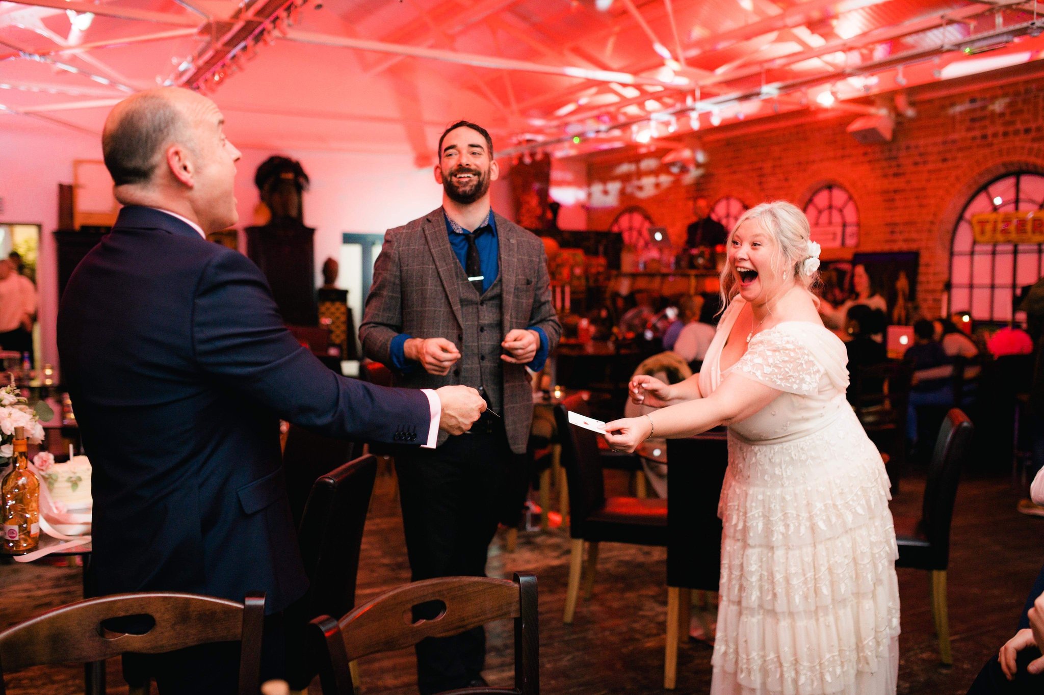 Our approach focuses on immersive, peripheral entertainment that enhances your day naturally rather than interrupting it. Instead of traditional stage shows, which we can offer if thats what you prefer, we create stylish, interactive experiences that blend seamlessly into the flow of the event, adding atmosphere, elegance, and surprise throughout drinks receptions, wedding breakfasts, and evening parties. The result is entertainment that feels organic, sophisticated, and perfectly timed.