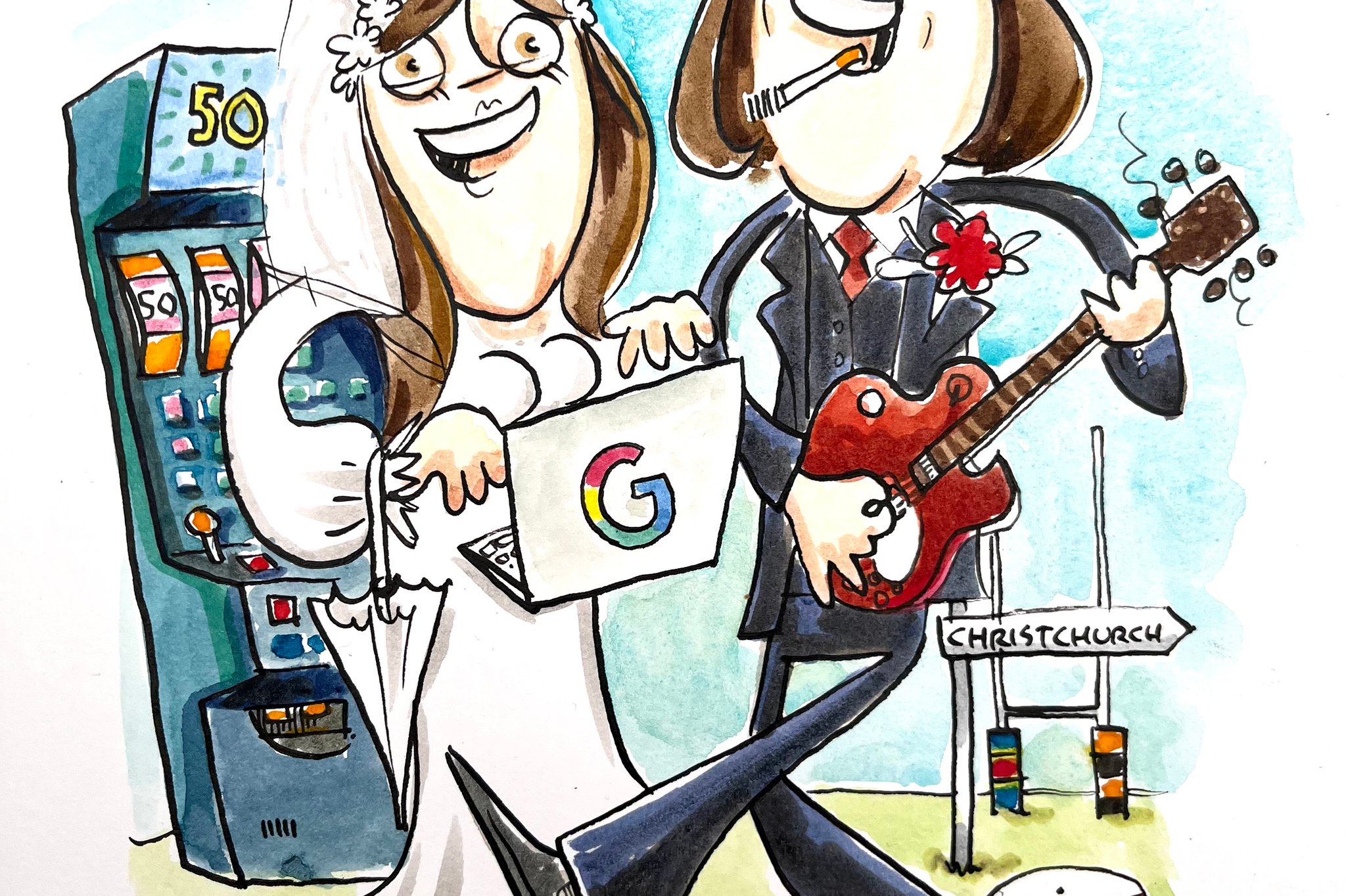 Dan is not a caricature artist. Caricature traditionally relies on bold exaggeration of facial features, and he prefers not to take that risk at a wedding. The intention is to ensure every guest feels comfortable and leaves with a drawing they genuinely enjoy. Rather than emphasising exaggerated features, Dan produces friendly cartoon illustrations that remain recognisable while keeping the tone flattering.